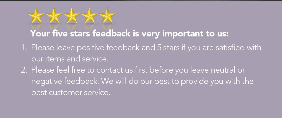 Вы можете оставить 5-звездочный комментарии для нашего магазина. Это будет очень полезно для нашего магазина.
