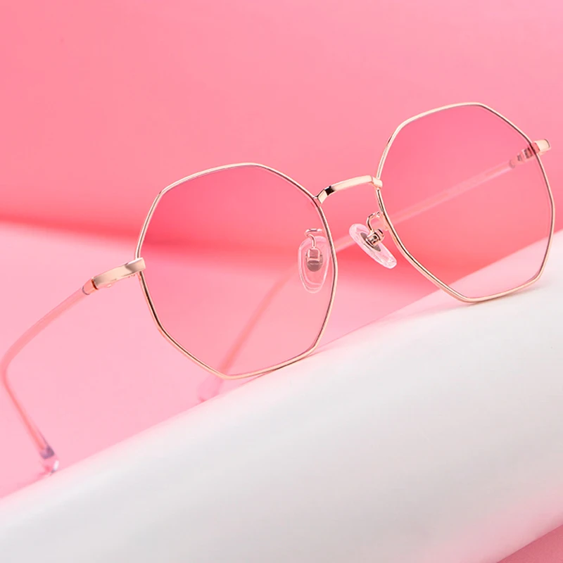 2) Цвет: Золотая оправа, розовые линзы/черная оправа, серые линзы/черная оправа, прозрачные линзы/Золотая оправа, фиолетовые линзы
