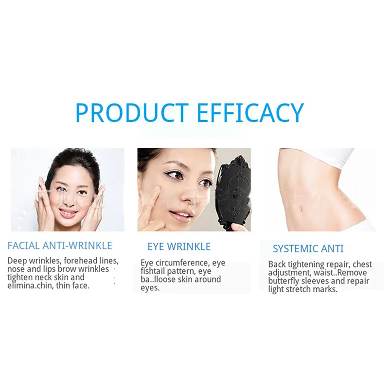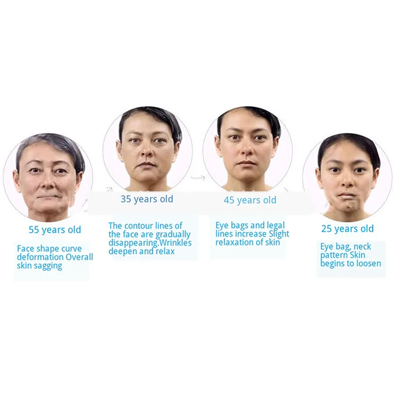 1. Лица против старения морщин. Глубокие морщины, линии лба, носогубные складки, морщины бровей подтягивают кожу шеи, устраняют двойной подбородок, тонкие формы лица.