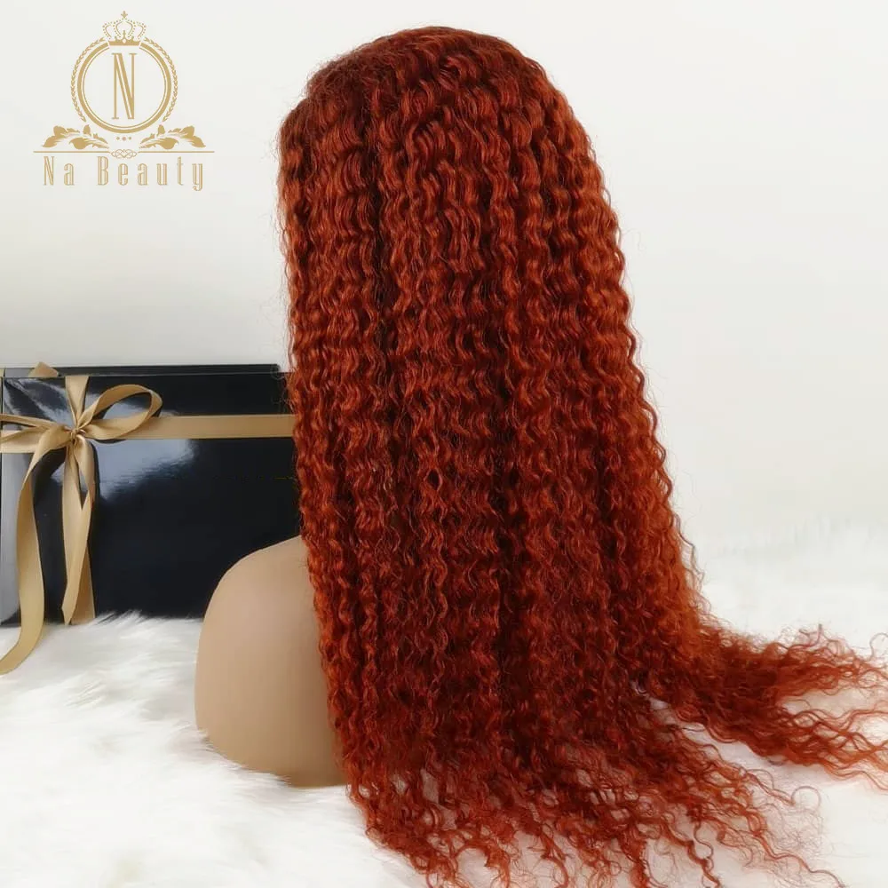 180 плотность Цвет имбирь оранжево-эффектом деграде (переход от темного к вьющиеся 13x6 Синтетические волосы на кружеве человеческих волос парики с детскими волосами предварительно вырезанные перуанские волосы Nabeauty