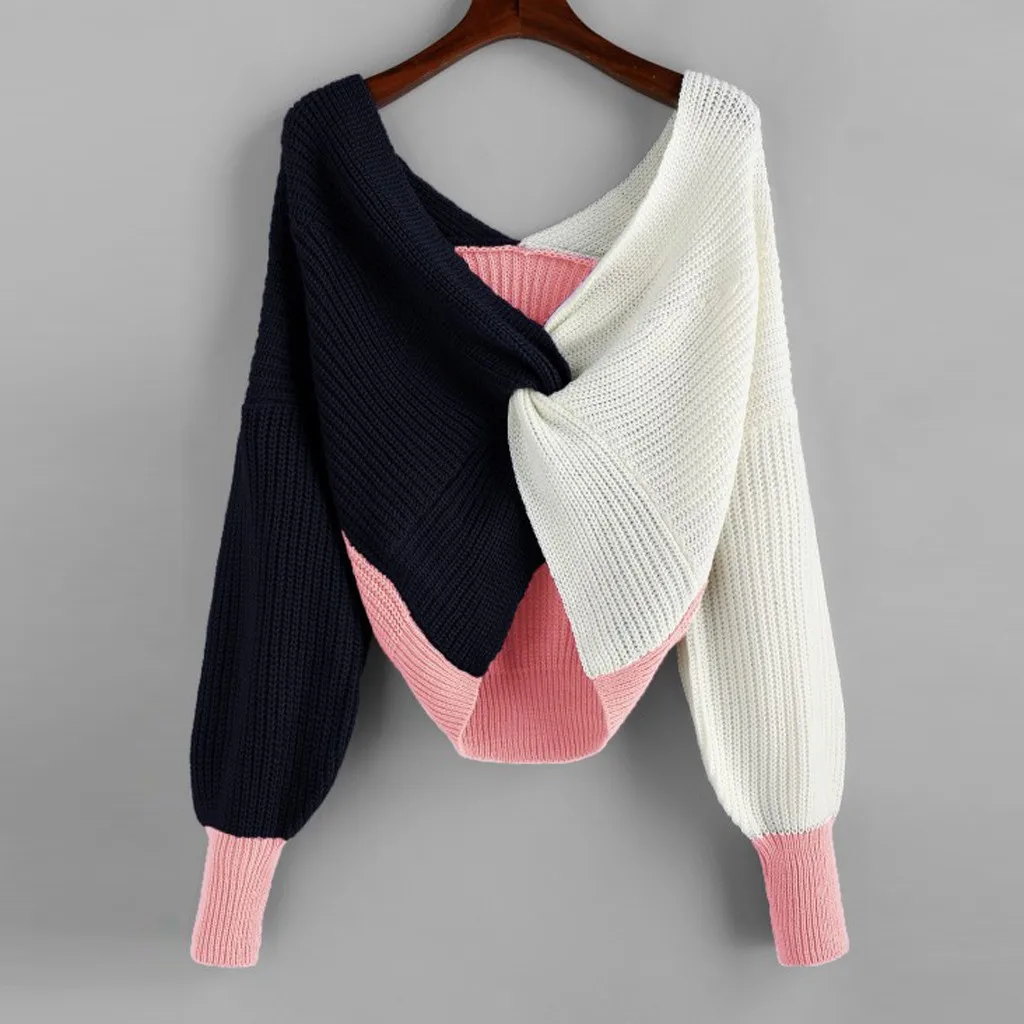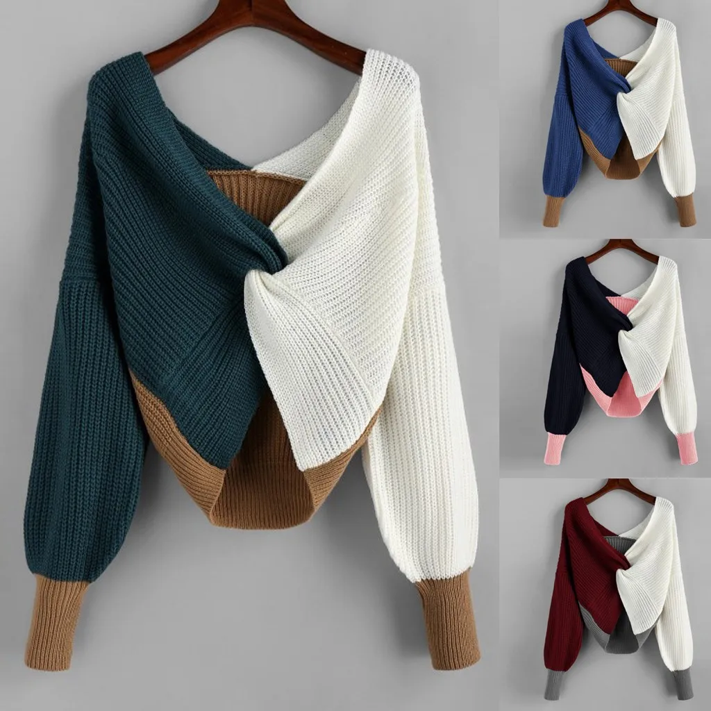 Женский повседневный пуловер с v-образным вырезом, свободный свитер, джемпер, трикотажная блузка