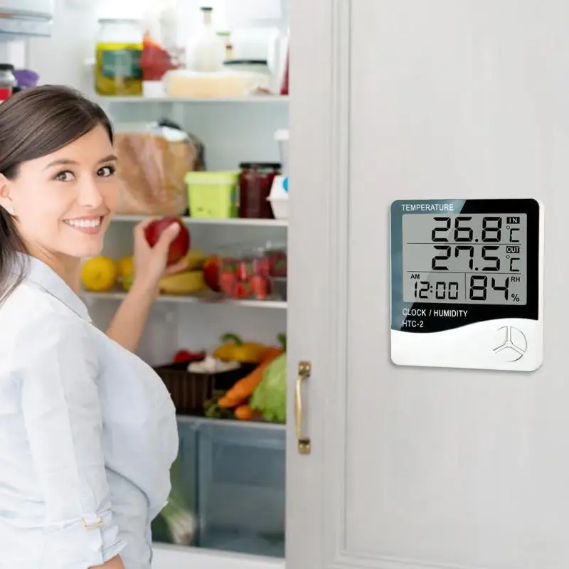 Цифровой термометр-гигрометр HTC-2, электронный измеритель температуры и влажности, домашние и уличные часы