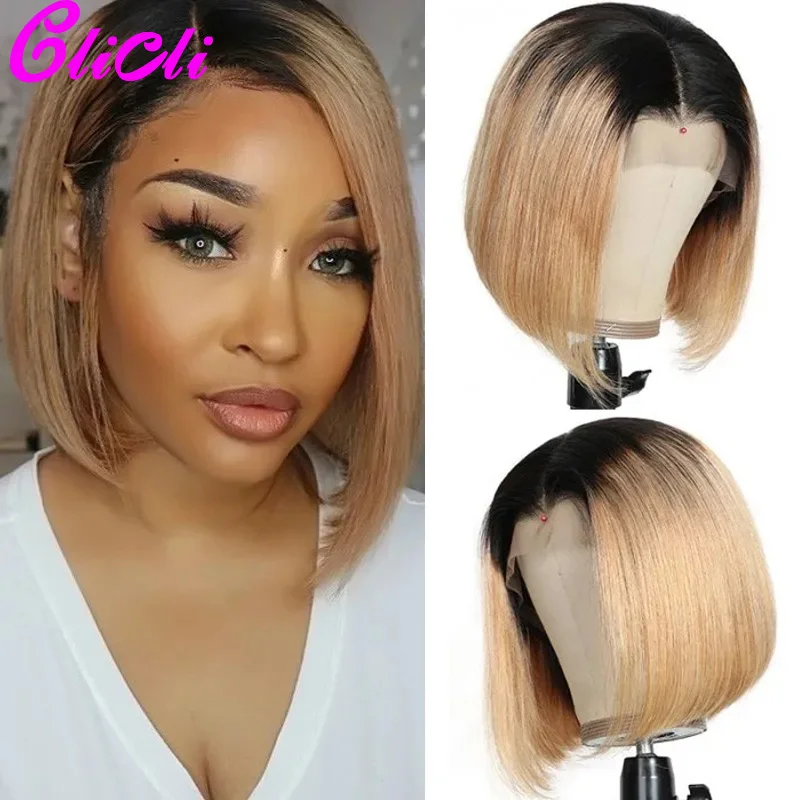 Перуанские волосы парики боб 4x4 закрытие парик 13x4 Короткие Боб Синтетические волосы на кружеве парик с эффектом деграде (переход от темного к блондинка 1B 27 парики из натуральных волос с Африканской структурой, тупой вырезать парик 150%