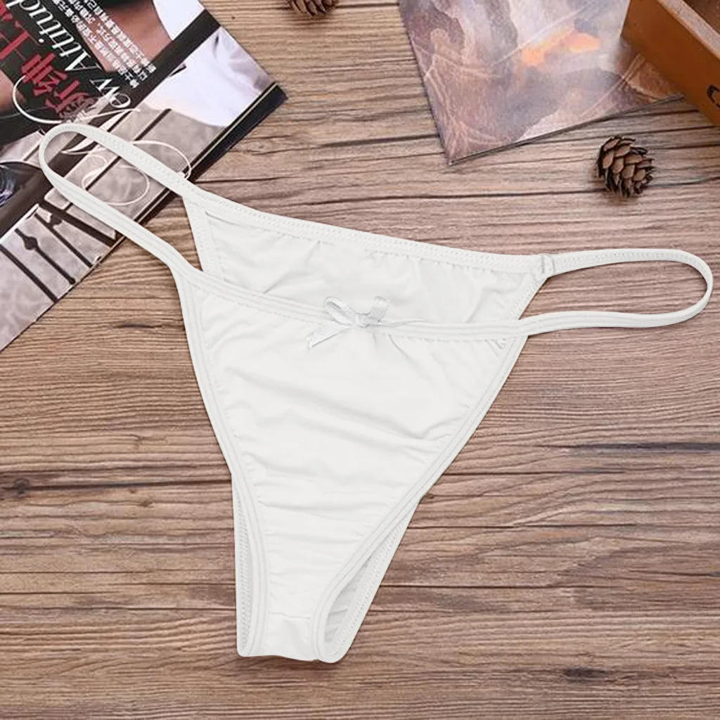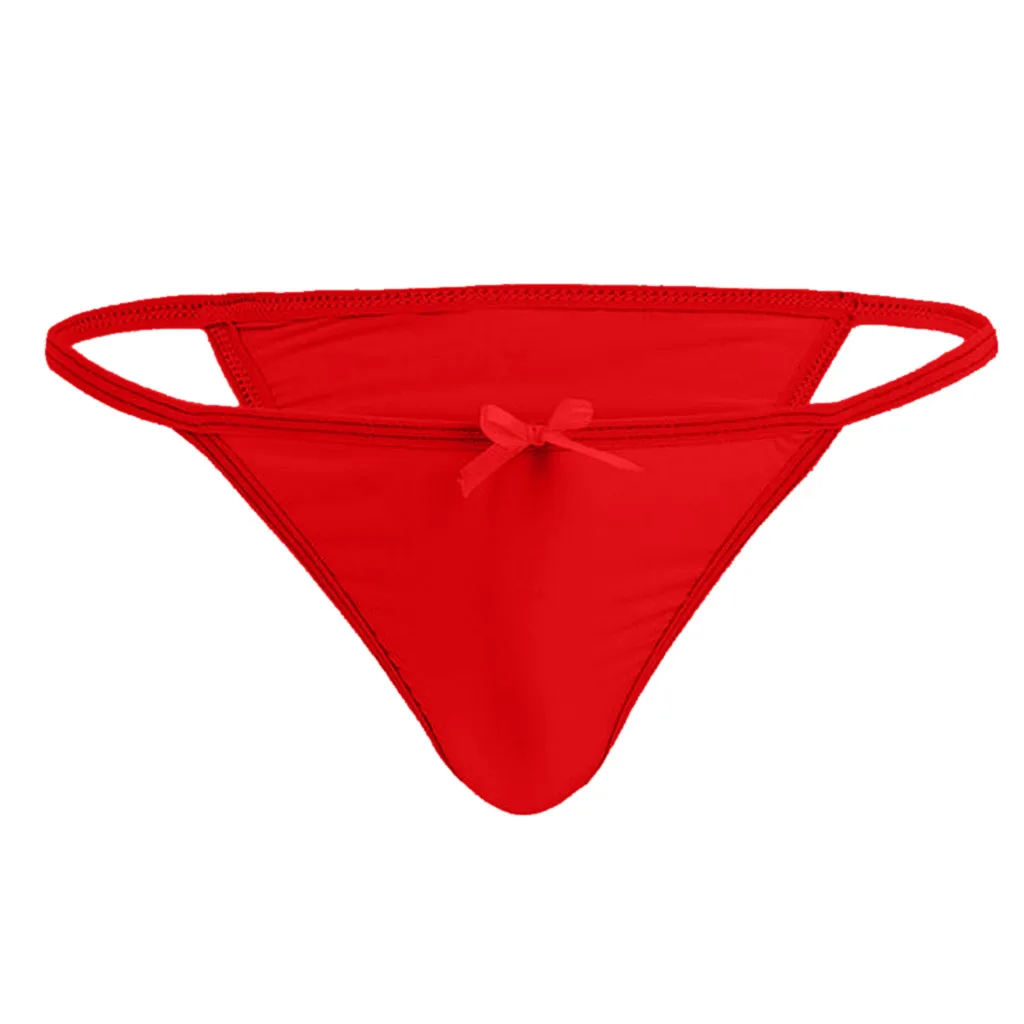 Мужское сексуальное шелковое нижнее белье, ультратонкие прозрачные удобные трусы с низкой посадкой и бантиком