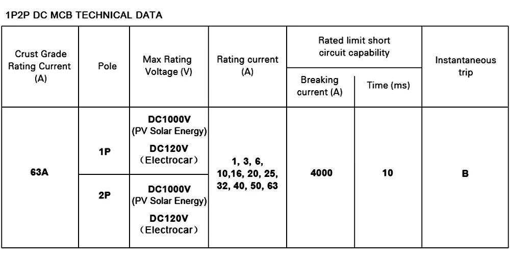 CENB1-63 1PХарактеристика автоматического выключателя DCMini