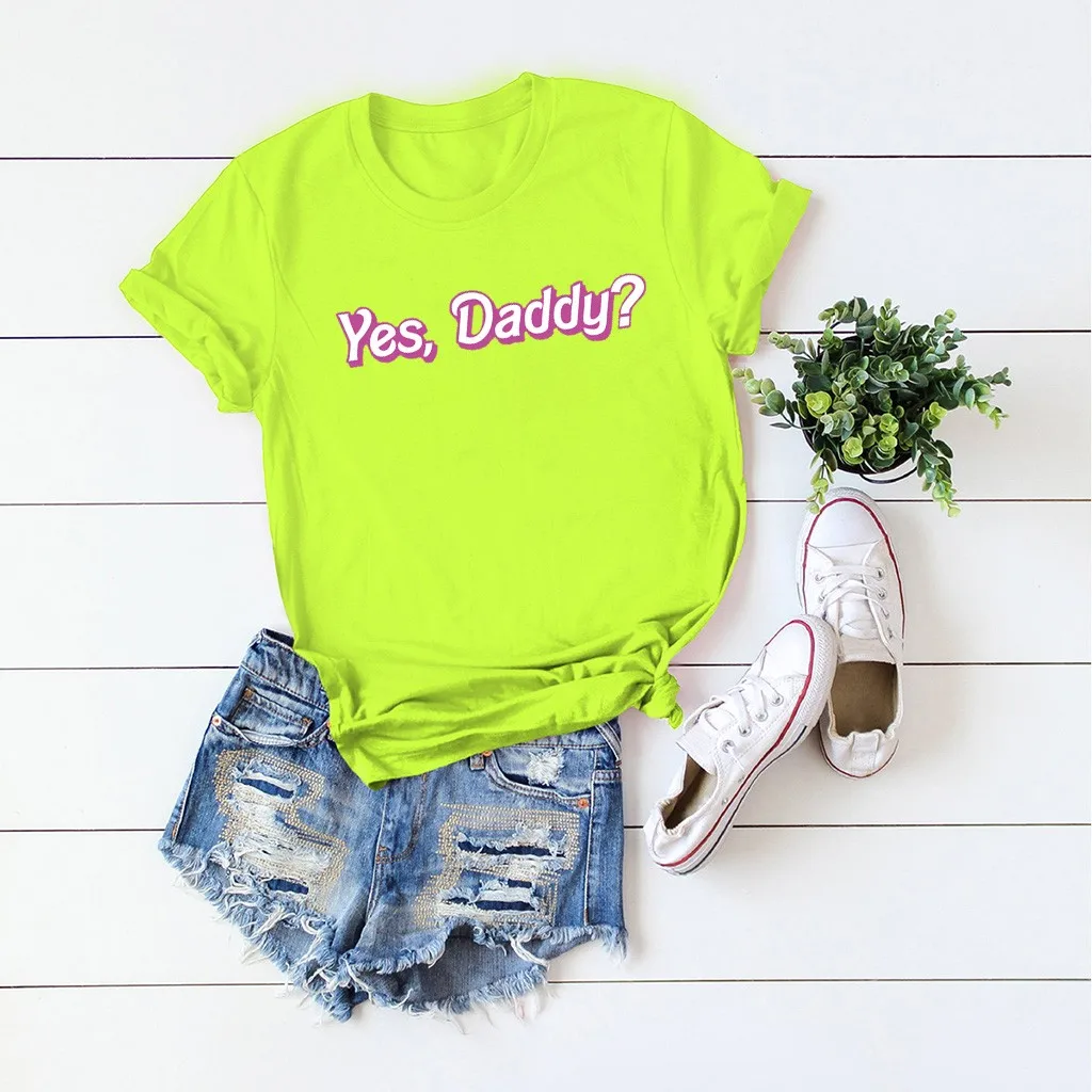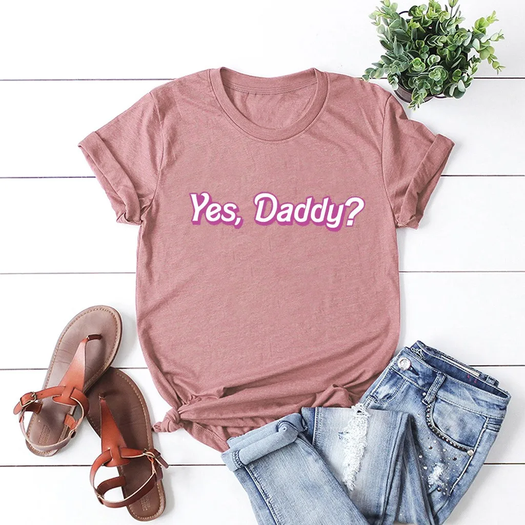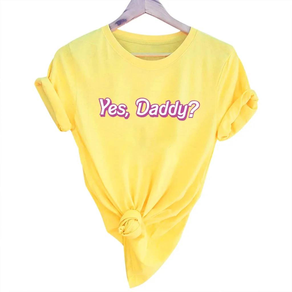 Женская футболка с коротким рукавом JAYCOSIN, тонкая футболка с надписью yes daddy, Повседневная футболка в стиле Харадзюку Особенности: 1. Он изготовлен из высококачественных материалов, прочный, для ежедневной носки 2. Топы с блестками очень модные. 3. Очень круто носить, новый вид, новый вам 4. Модный бархатный и хлопковый дизайн сделает вас более милым и энергичным 5. Эти легкие Топы идеально подходят для беззаботных дней! Информация о продукте: Сезон: Осень/весна/зима Пол: женщин Повод: ежедневно Материал: полиэстер Тип узора: однотонный Стиль: Повседневный, модный Длина рукава: полная Воротник: круглый вырез Размер: Соответствует размеру Толщина: Стандартная Как стирать: Ручная стирка в холодной воде, подвешивание или сушка Что вы получаете: 1 х Женские топы