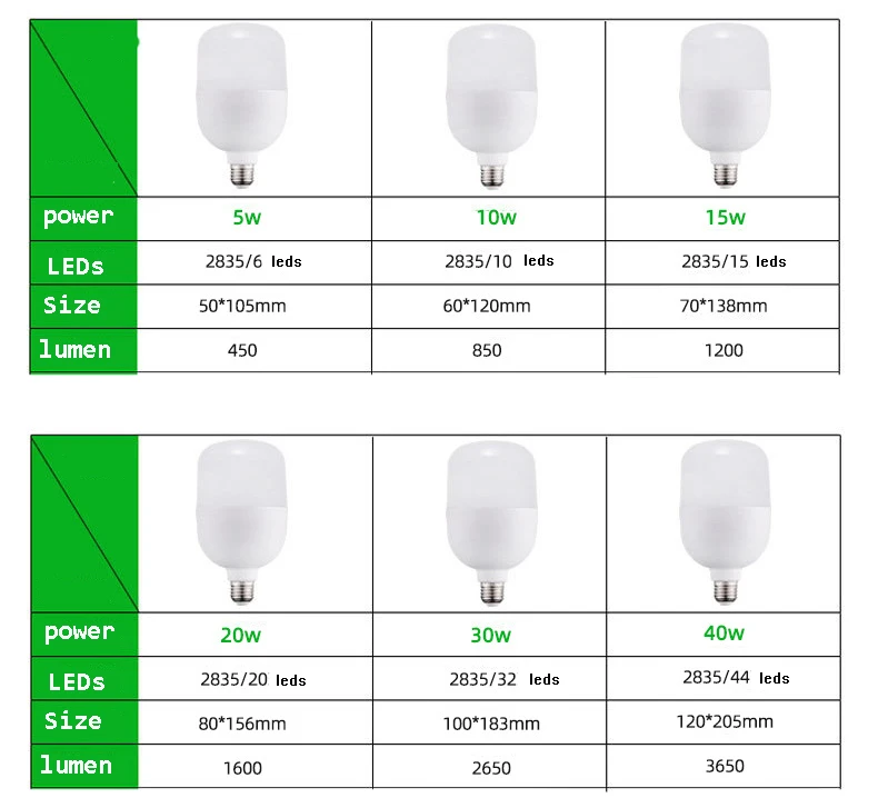 Specifications: Lamp type: E27 B22 Voltage: AC185-265V Power: 30W 40W 50W Color temperature:6500K LED type: 2835 SMD Beam degree: 360° Light color: white light Shade material: PC Feature: Energy-saving and environmentally friendly, high quality, effective and low heating Suitable for office, dance hall, bar, exhibition or home use Package included: 1 x LED Light bulb
