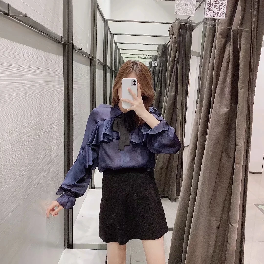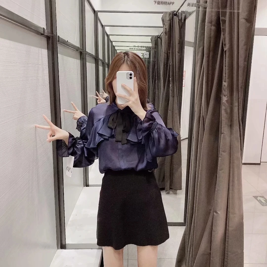 Женская шифоновая блузка со шнуровкой плиссированная однотонная элегантная