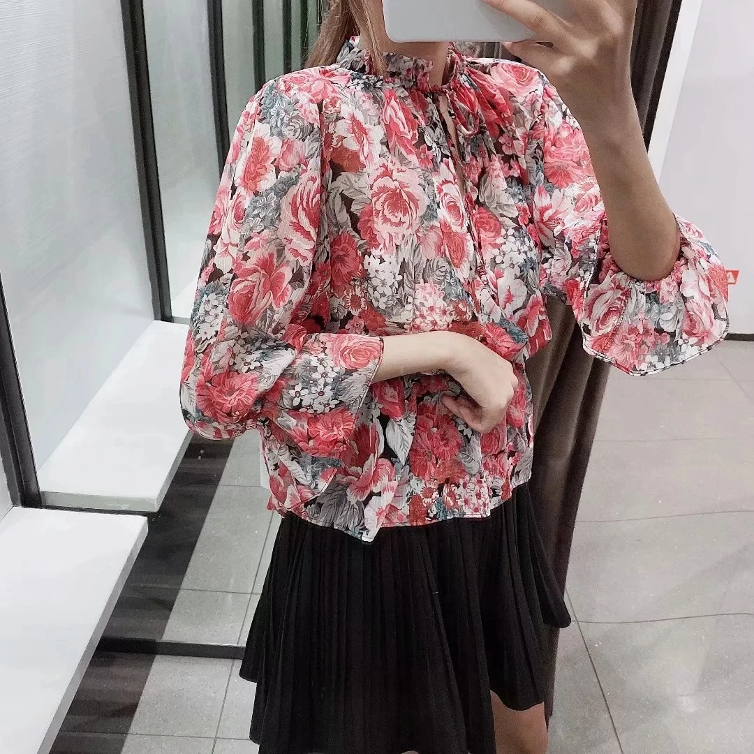 Женская блузка с рюшами TWOTWINSTYLE элегантная повседневная круглым вырезом длинными