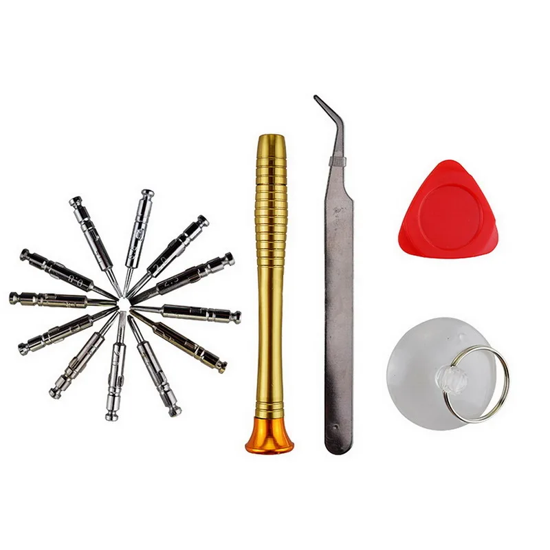 Набор 2: 12 * бит, 1 * пинцет, 1 * присоска, 1 * ручка, 1 * Красный треугольный инструмент