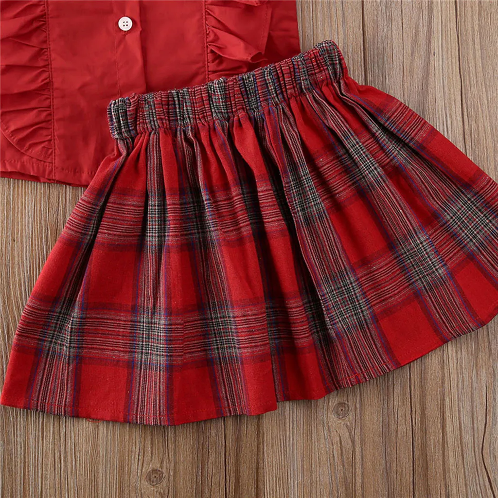 Детская красная куртка с отложным воротником и короткими рукавами для маленьких девочек; футболка; короткая юбка