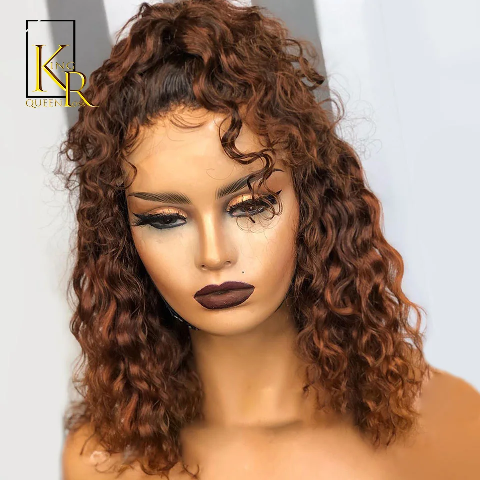 1B/27 цвет и естественный цвет короткие вьющиеся волосы боб 13X4 кружевные передние человеческие волосы парики 130% плотность волос