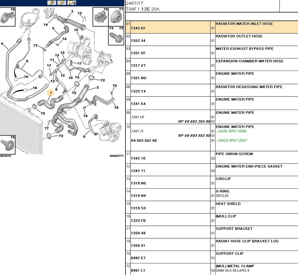 Информация о продуктеНазвание продукта: впускная труба радиатораНомер детали: 1343KF 1343.KF 1343 KFМодель: Peugeot 3008 308 RCZ Citroen C4