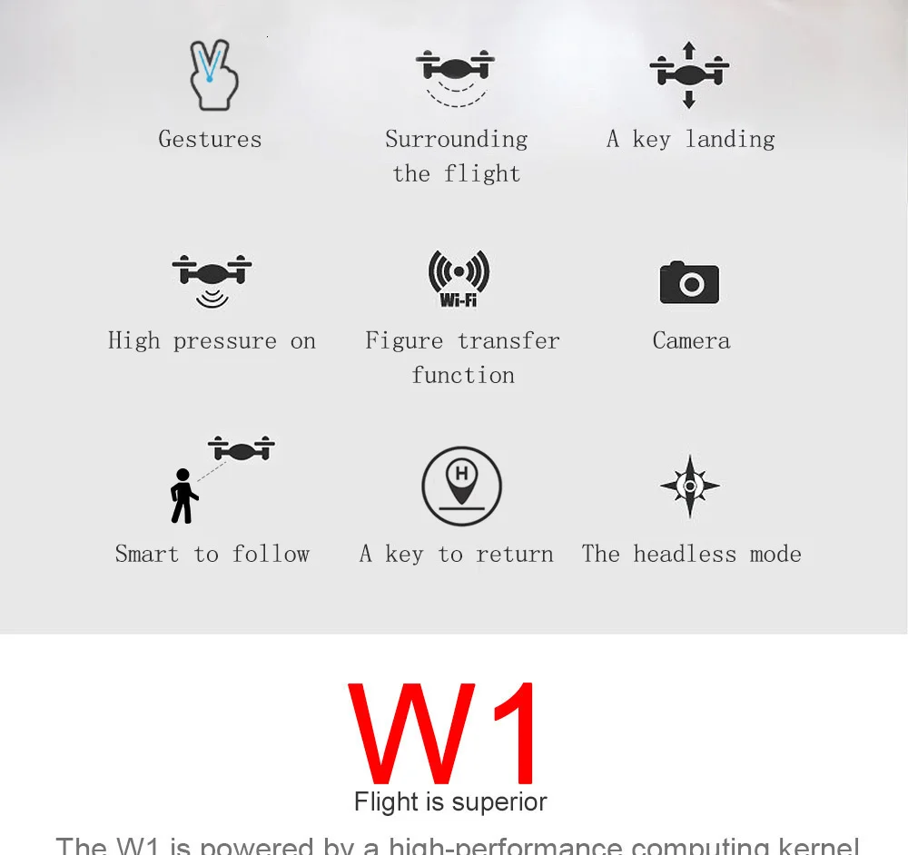 GPS, 5G Wi-Fi FPV, следующий, объемный, жесты, персонажи следуют, камера, режим удержания высоты, режим Безголового, автоматическое возвращение одной кнопки, посадка одной кнопкой/взлет, вверх/вниз, вперед/назад, поворот влево/вправо, боковой полет