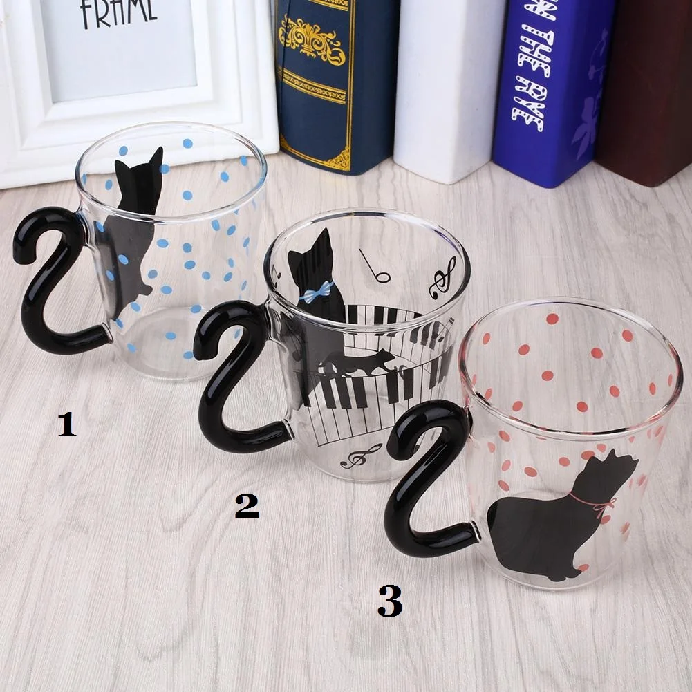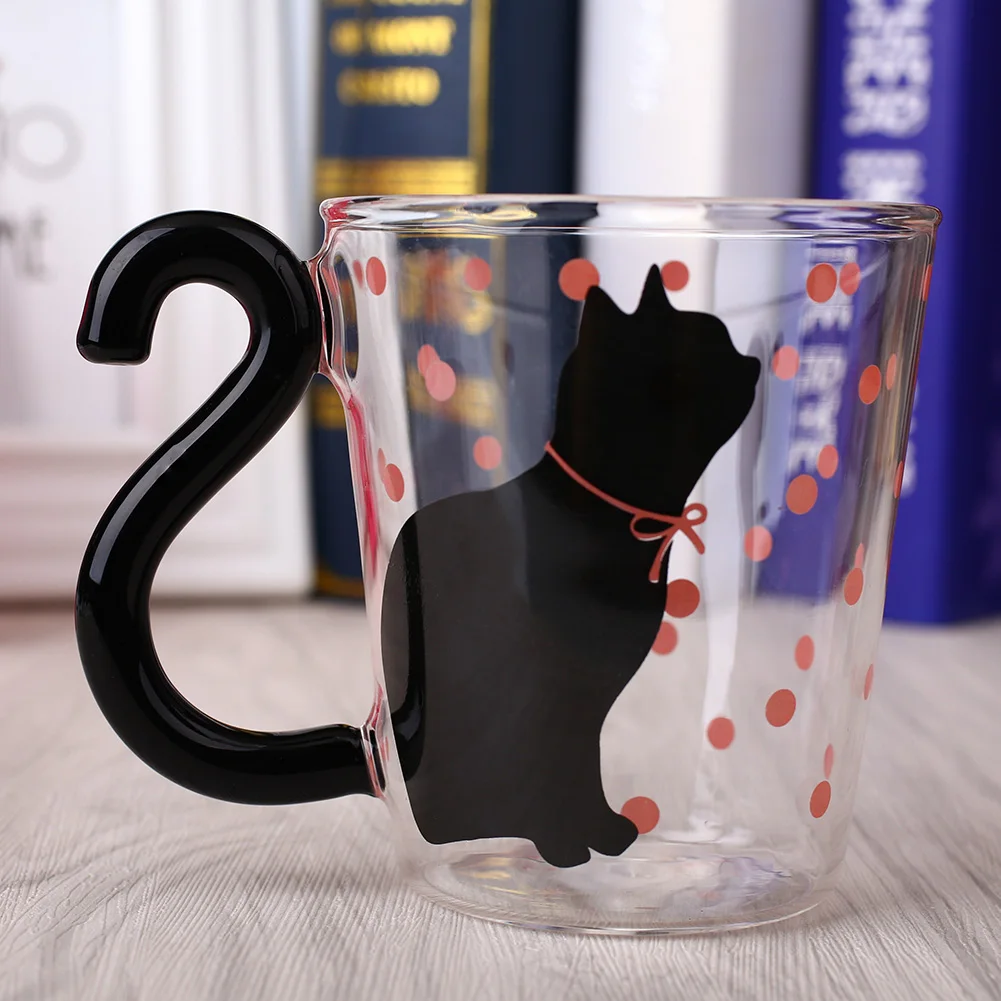 Милый Кот, стеклянная чашка для сока, кофе, молока, чая, кофе, стеклянная кружка, кошачий хвост, ручка, кошка, День Святого Валентина, подарки для влюбленных, домашняя чашка для пары