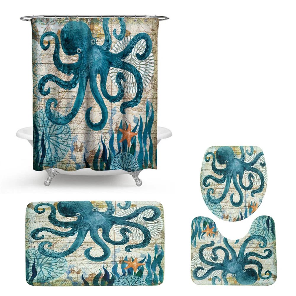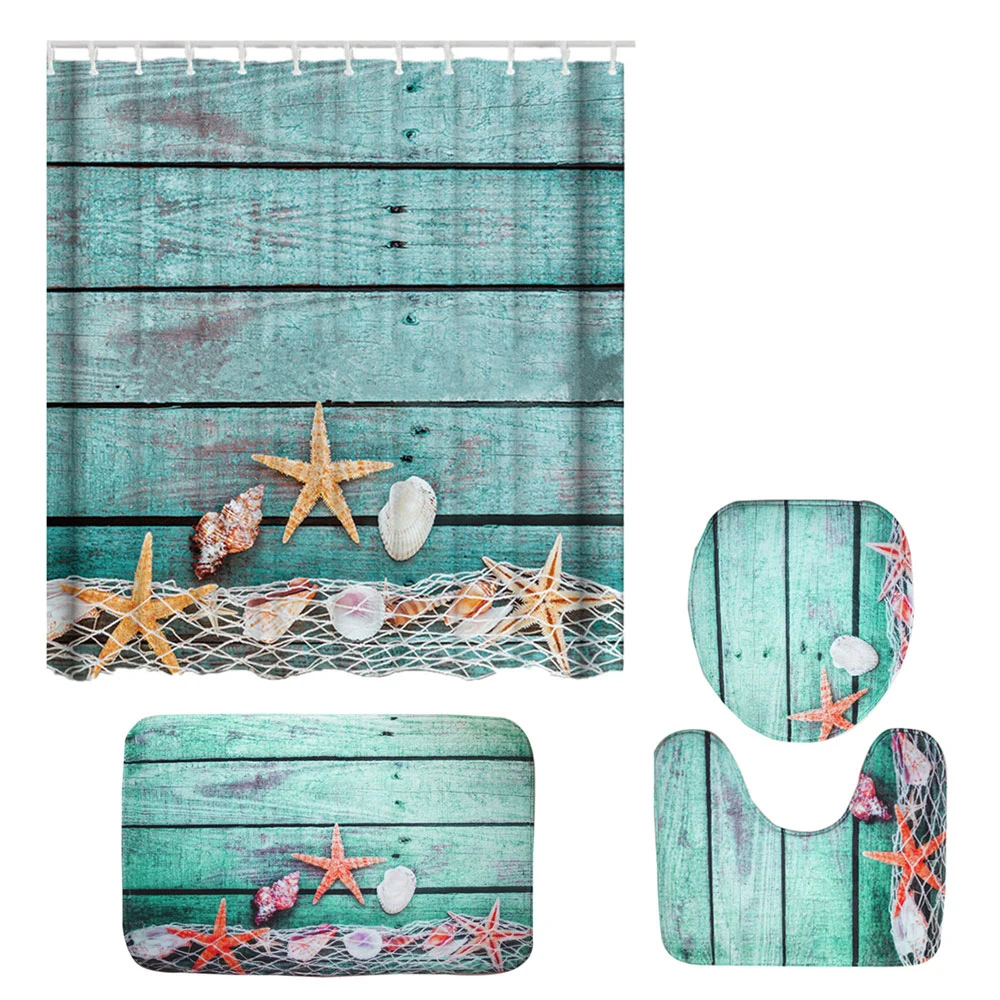 4 шт./компл., летние раковины, морская звезда, коврики для ванной, занавески для душа, покрытие для унитаза, коврик для ванной комнаты, напольный коврик, аксессуары для ванной комнаты
