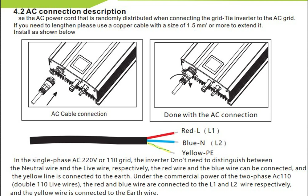 5. Сначала Подключите инвертор к сети переменного тока, затем подключите аккумулятор, инвертор автоматически выдаст ту же мощность, что и мощность, обнаруженная коллектором. Поэтому инвертор не будет иметь избыточное электричество для отправки в сетку (т. Е. Функция автоматического ограничения)