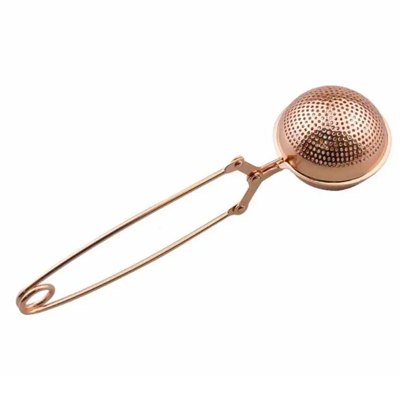 Фильтр для заварки чая из нержавеющей стали, сетчатый фильтр для кофе, фильтр для специй, диффузор с ручкой, шарик для чая, розовое золото