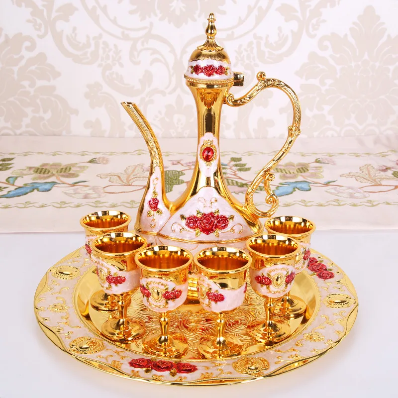 Набор стаканчиков для вина, чашка для ликера с флагоном и подносом, 8 шт. в наборе, креативный резной бокал для вина, европейский стиль, посуда для питья, свадебный подарок