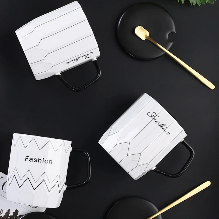 400 мл Геометрическая чашка Скандинавская керамическая кофейная кружка керамическая кружка для чая креативные чашки для кофейной чашки с крышкой Ш: 8,7 см, В: 105 см Объем: 400 мл