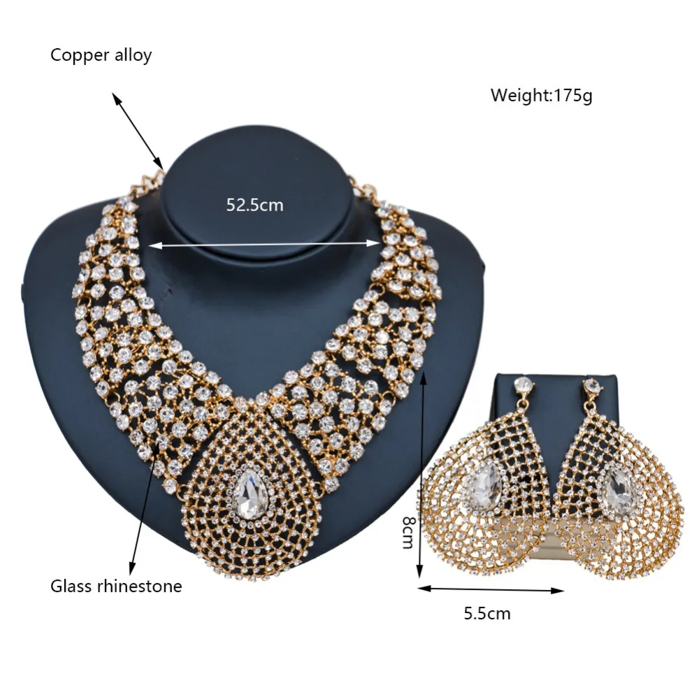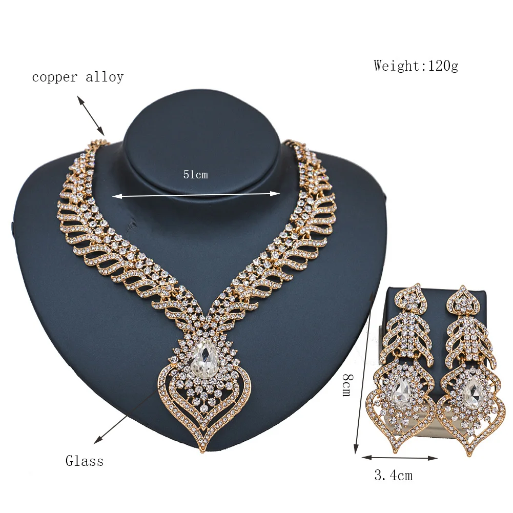 CACARELuxury Dubai Gold Jewelry Sets Women Big Necklace Earring Set Indian Jewellery F1037 Rhinestone Party Jewels