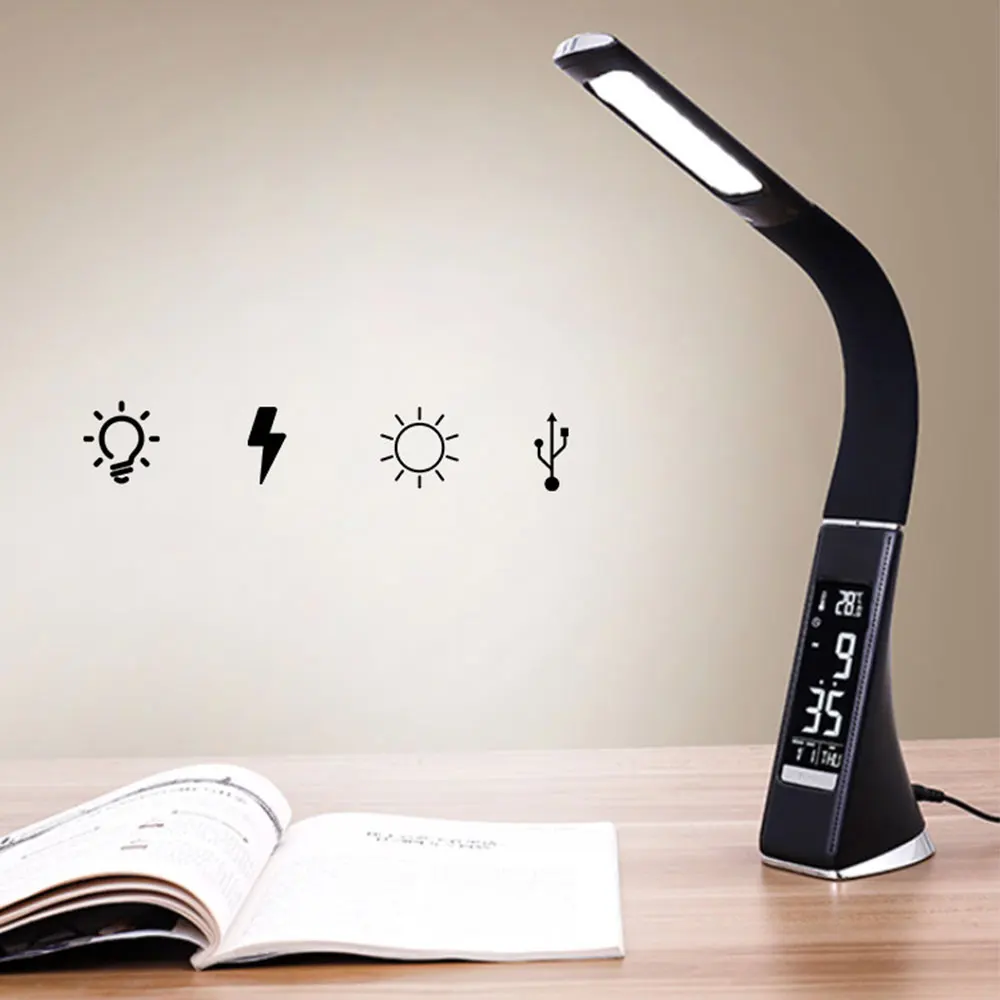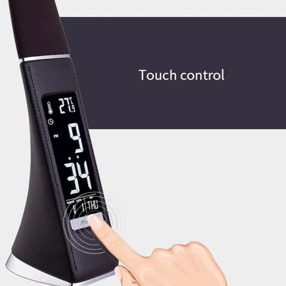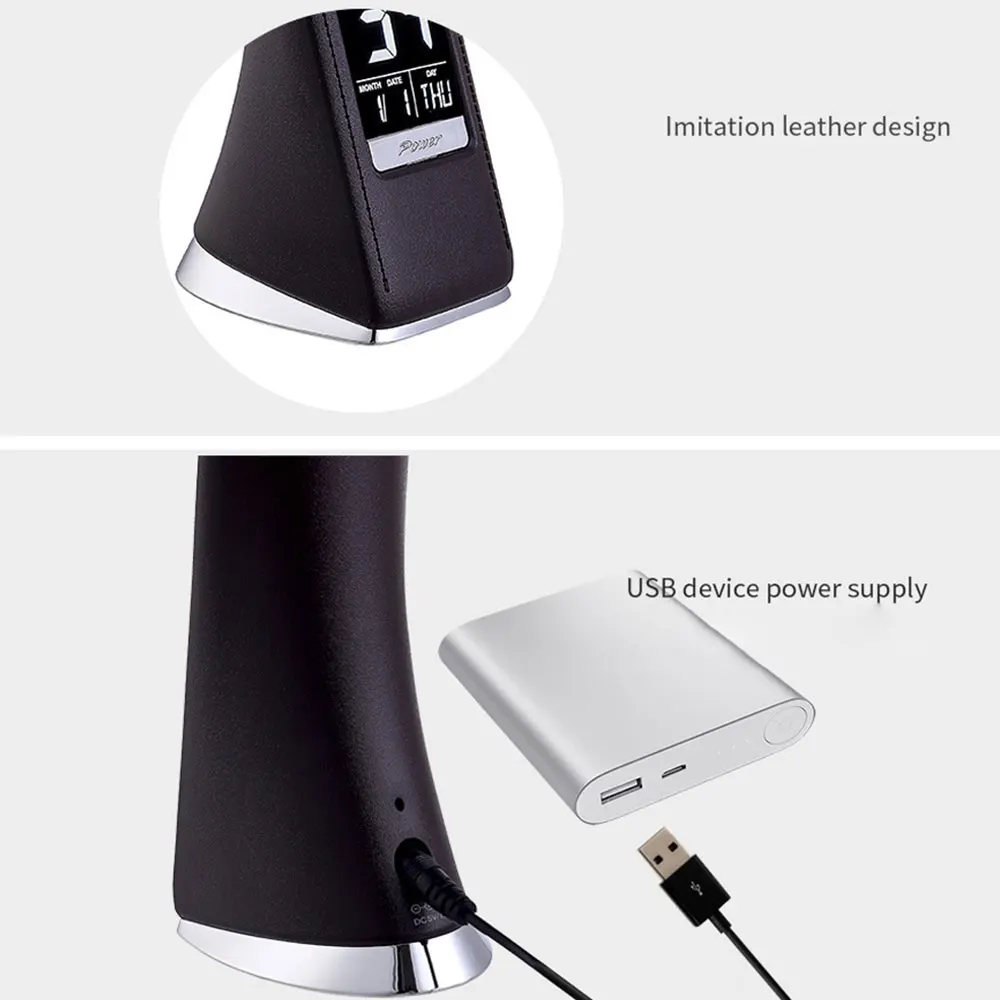 -Это очень привлекательный настольный светильник. Материал из кожи мягкий и действительно добавляет роскоши светильник. Расположение часов и даты уникально и приятно для глаз. Основа из шоколадно-коричневой кожи очень чистая и взвешенная.