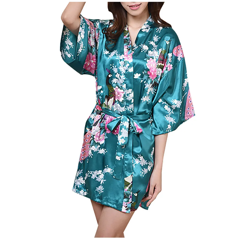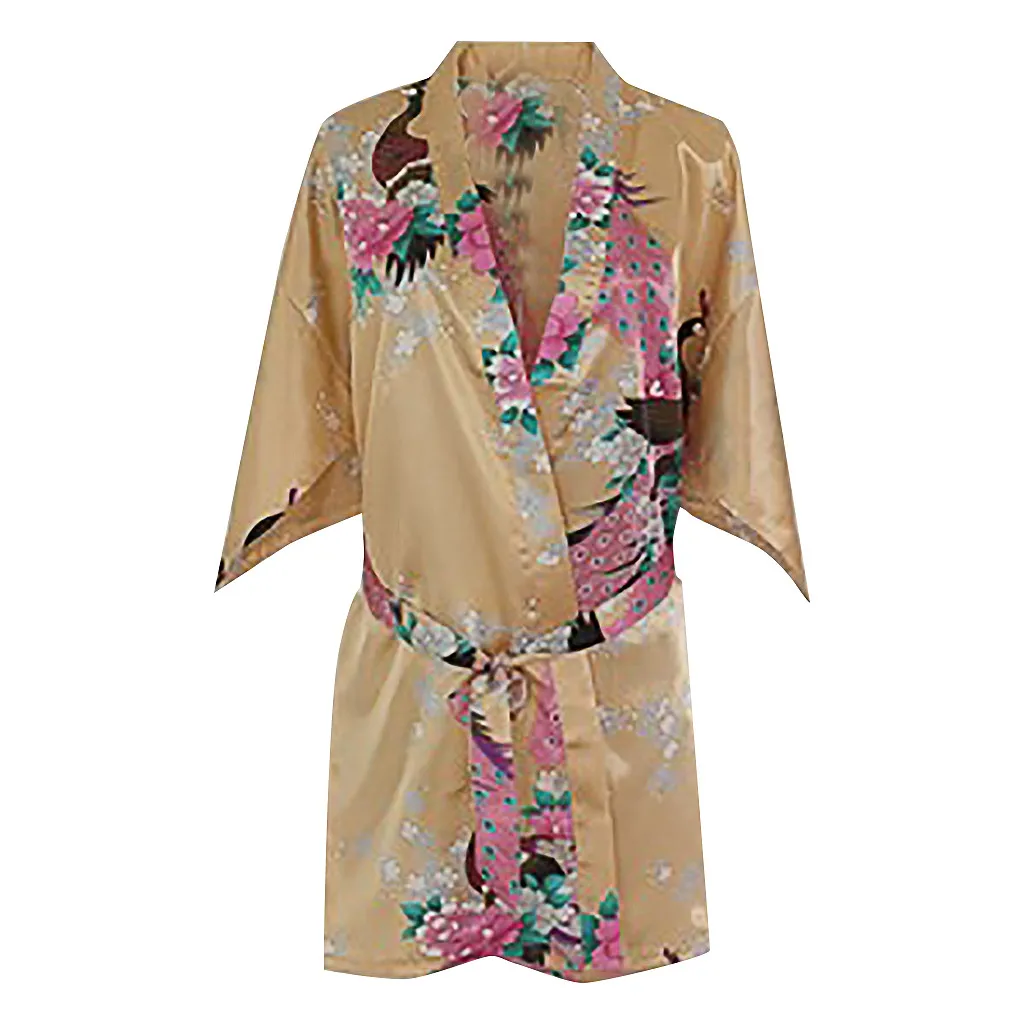 Женский сексуальный атласный банный халат на тонких бретелях, кружевное нижнее белье, ночная рубашка с рукавом три четверти, кимоно, халат, Femme, одежда для сна подружки невесты