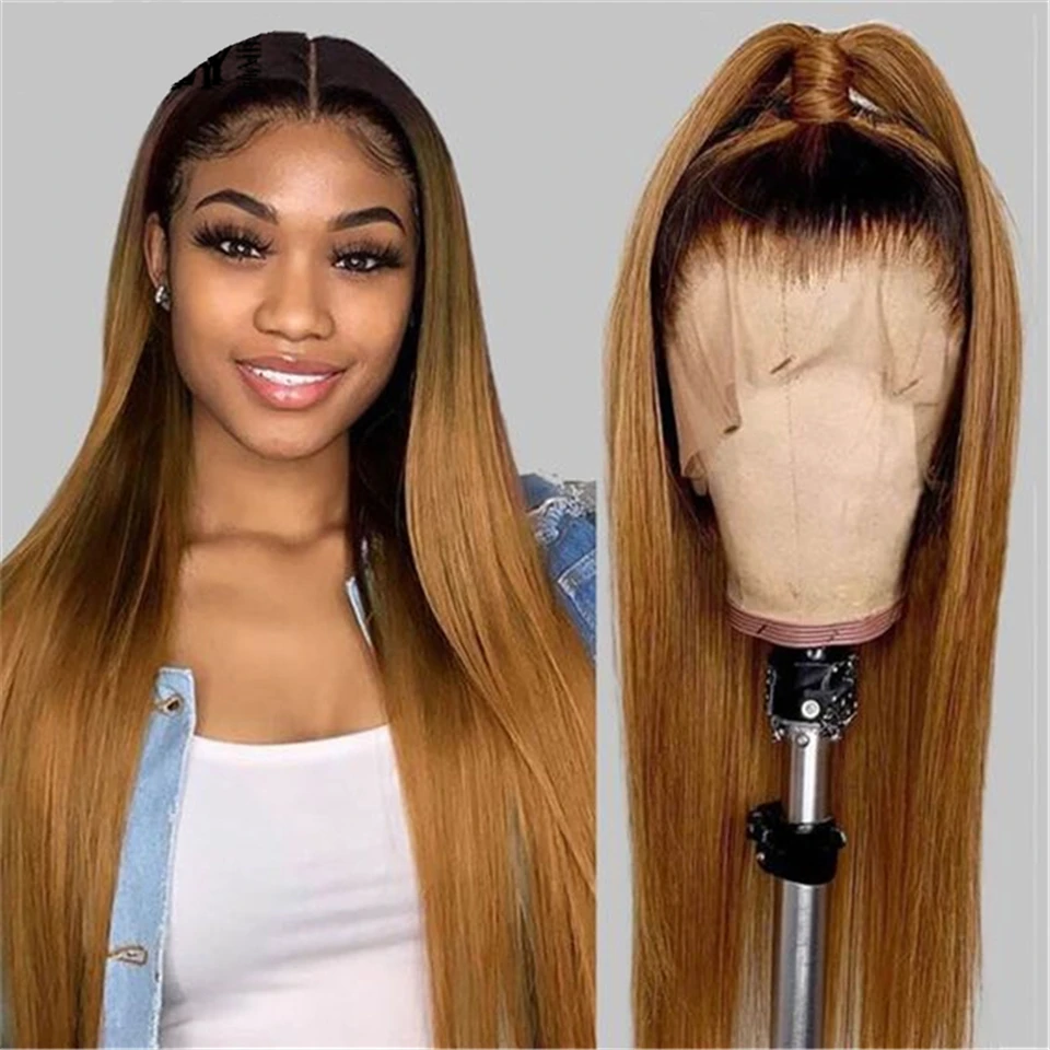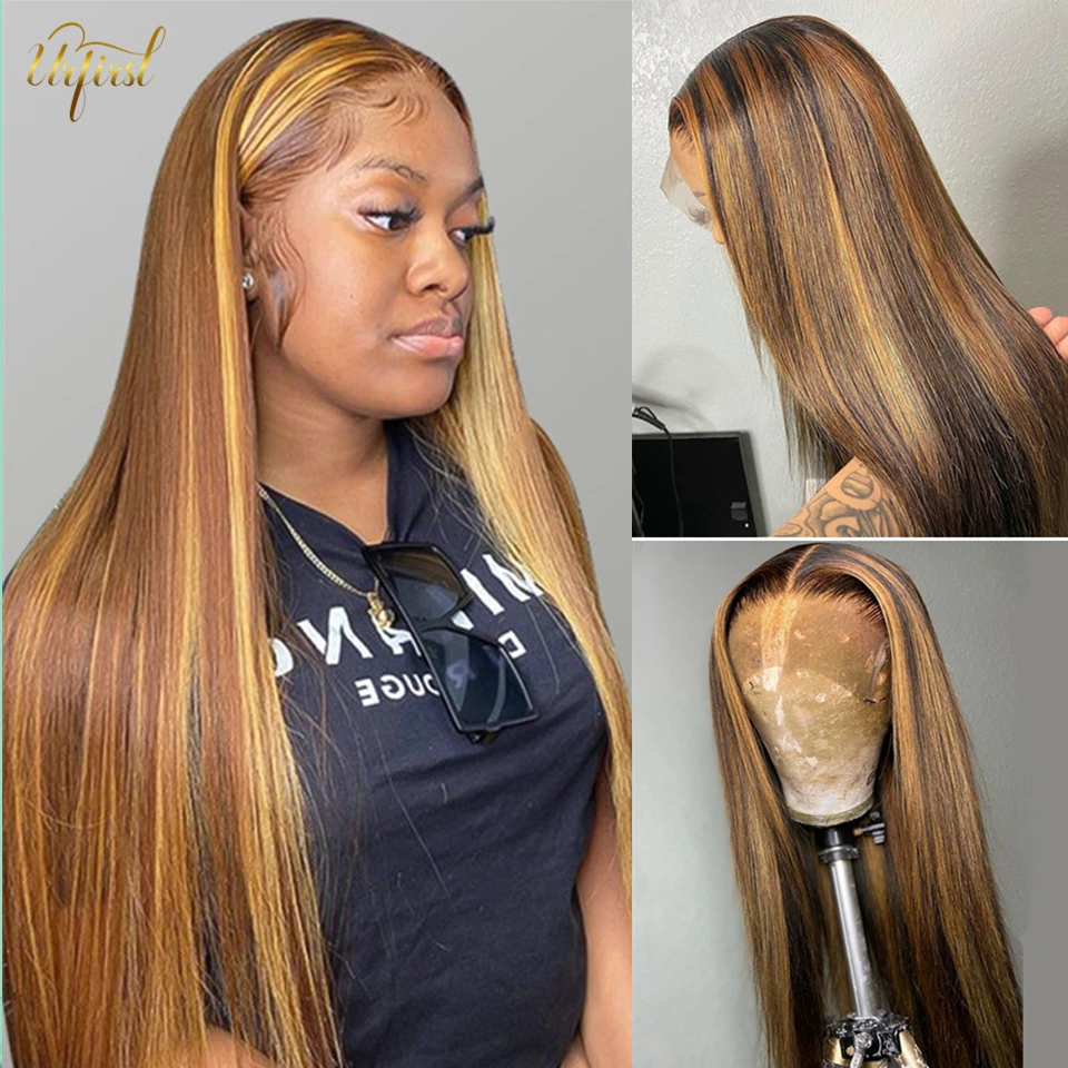 URFIRST Highlight Wig 13x6 Bone Straight Lace Front Wig Brazilian Ombre Human Hair Wigs For Women Brown Colored Wigs Pre Plucked Remy