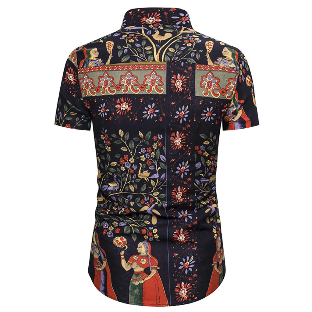 3. Отложной воротник, КороткийРукав, на пуговицах,Повседневная летняя рубашка с принтом, приталенная посадка.