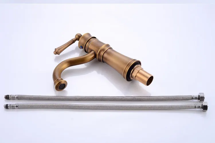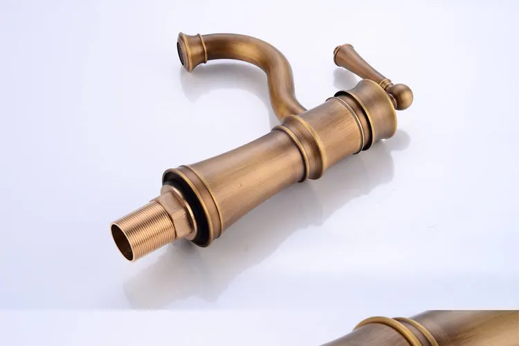 Винтажный Золотой смеситель для ванной комнаты, смеситель горячей и холодной воды, роскошный кран с креплением на палубу, кран с одним отверстием, кран с вращением на 360 градусов, бронзовый кран для раковины