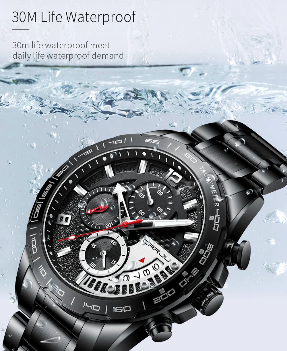 CRRJU Роскошные Брендовые спортивные часы из нержавеющей стали мужские новые наручные часы с хронографом модные повседневные кварцевые часы с датой мужские часы