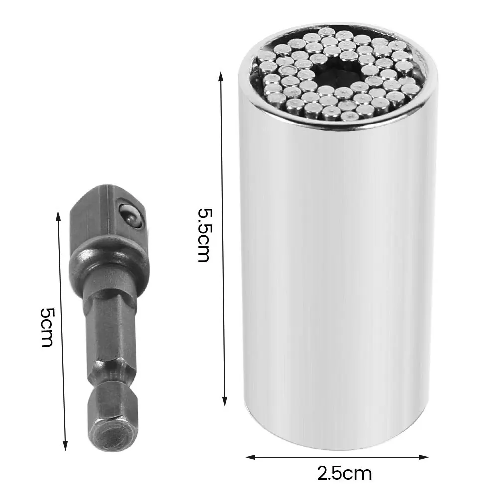 Универсальный адаптер для розетки может самостоятельно регулировать, подходя для тысяч крепежных элементов. Адаптер питания преобразует электрическую дрель в блок питания. Гаечный ключ с накатанной нескользящей ручкой, легко работать с небольшим усилием. Полированная хромированная отделка обеспечивает прочность и долговечность. Подходит для стандартных гаек и головок на 1/4-3/4 дюйма, метрических гаек и болтов 7-19 мм.