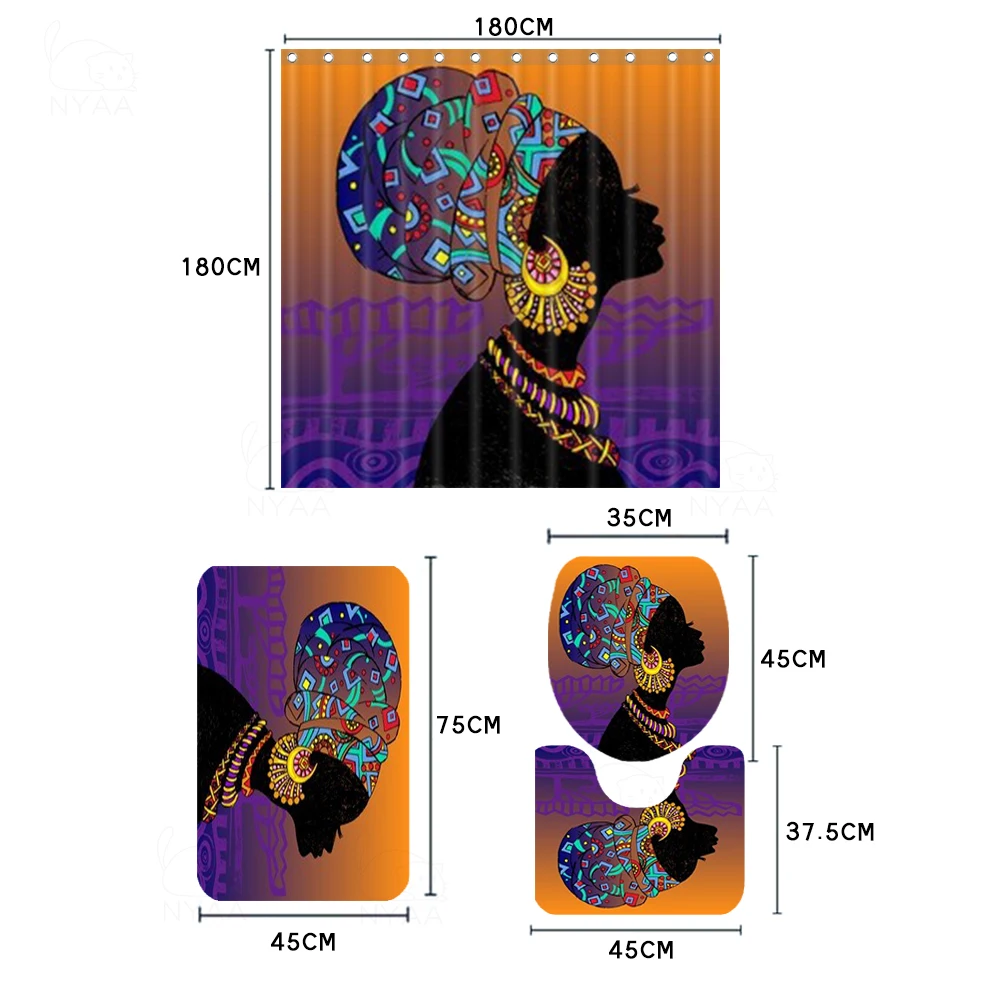 4pcs/set bathroom accessories(shower curtain & pedestal rug & lid toilet cover & bath mat), great addition for your bathroom. 100% Brand new and good quality. This set was absolutely adorable and looked great in the bathroom. Features: 4pcs/set bathroom shower curtain & pedestal rug & lid toilet cover & bath mat.