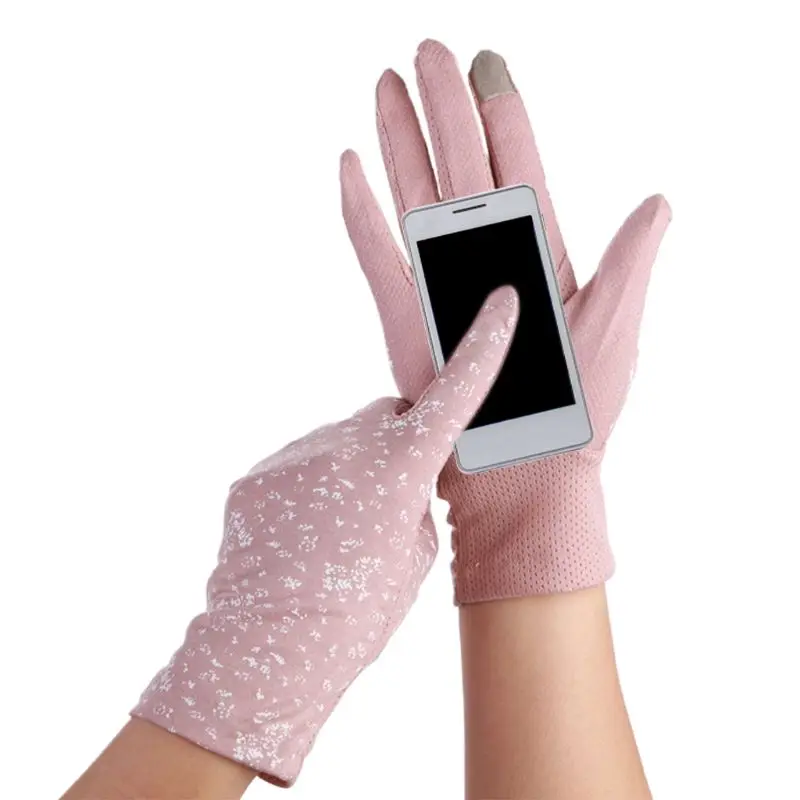 Женские летние цветочные ультра-тонкие перчатки с сенсорным экраном Нескользящие сетчатые УФ-защита от солнца однотонные перчатки для вождения