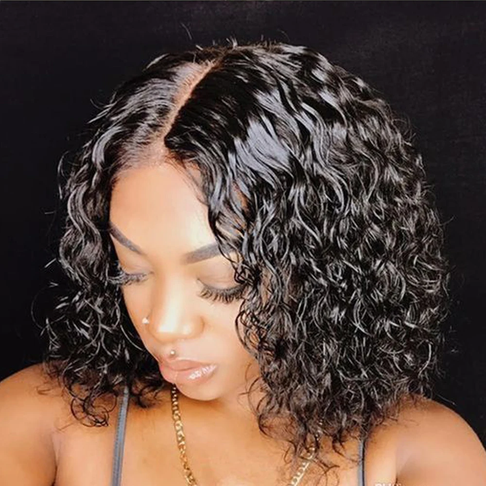 Jerry Curly 13x4 Lace Front Wig Short Bob Frontal Human Hair Wigs Deep Wave Brazilian Remy Pre Plucked 4x4 Closure 180% Density | Шиньоны и