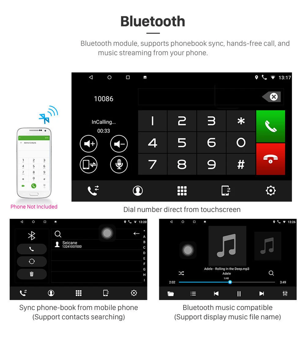 ● Встроенный Bluetooth с поддержкой A2DP/Hands-Free/Телефонная книга: Bluetooth hands-free Звонки, Bluetooth музыкальный плеер, Автозагрузка телефонных книг