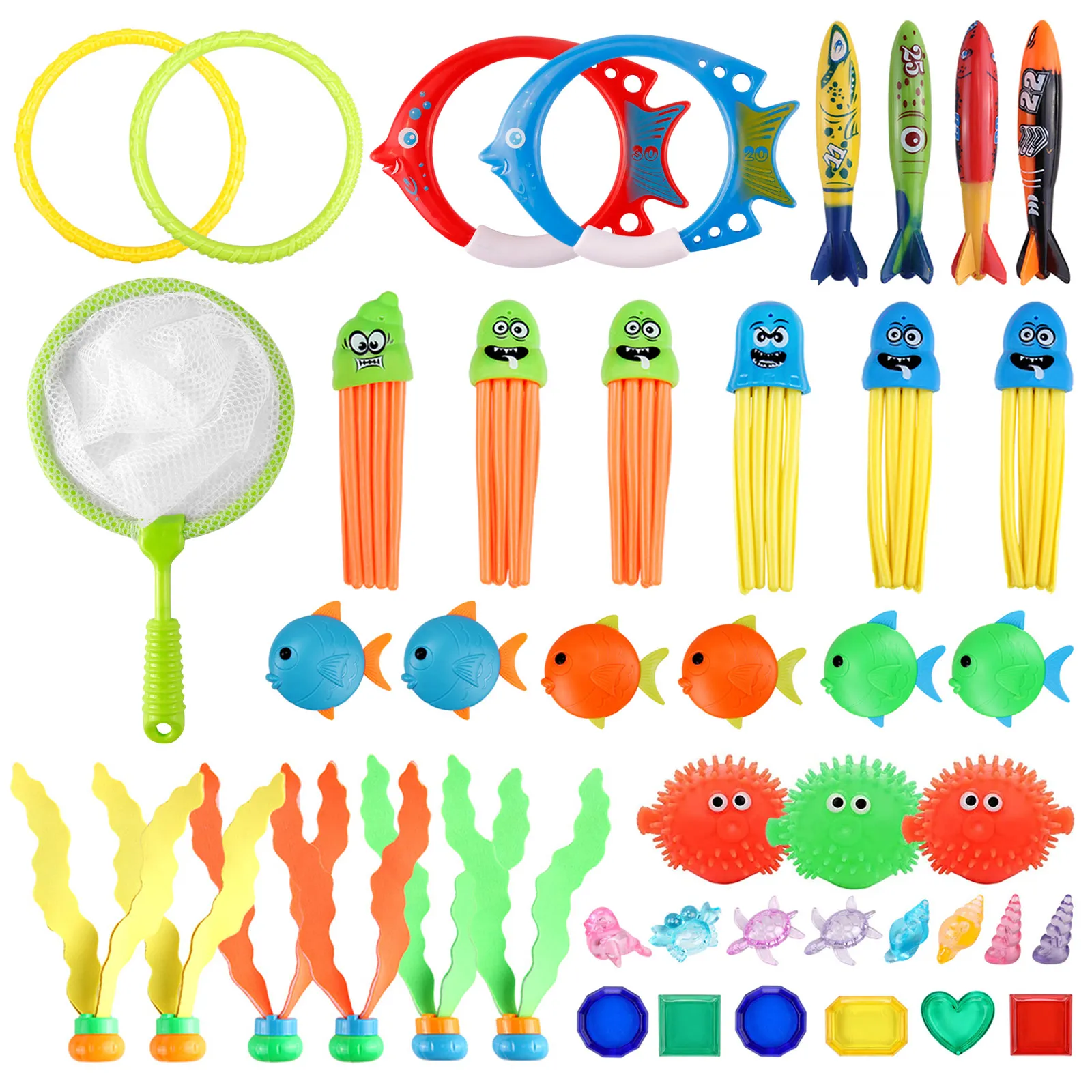 Игрушки для подводного плавания в бассейне, 45 шт., рыбные водоросли, кольца для дайвинга, торпеды, морской еж, сетка, игрушки для детей, обучение дайвингу$17,97/Шт.
