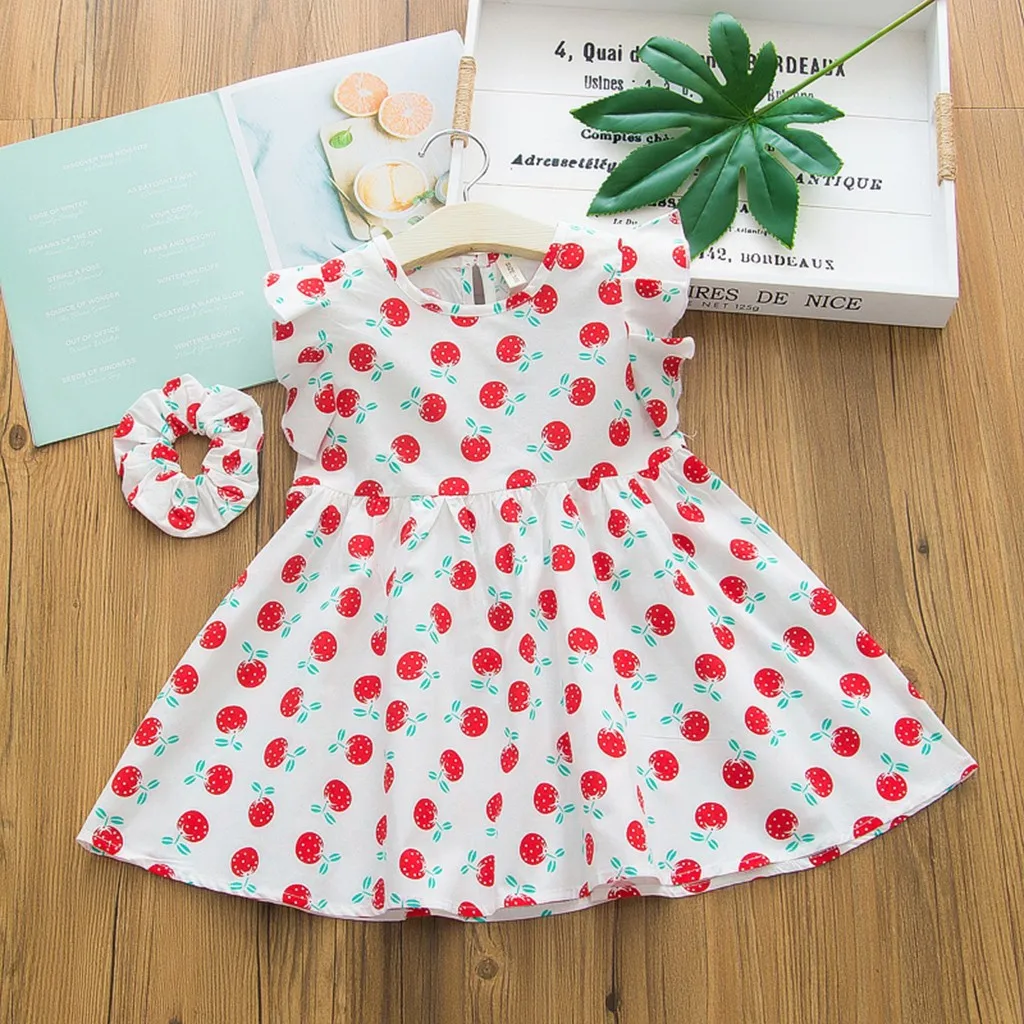 Платье без рукавов с оборками и цветочным принтом для маленьких девочек + повязка на голову, комплект одежды