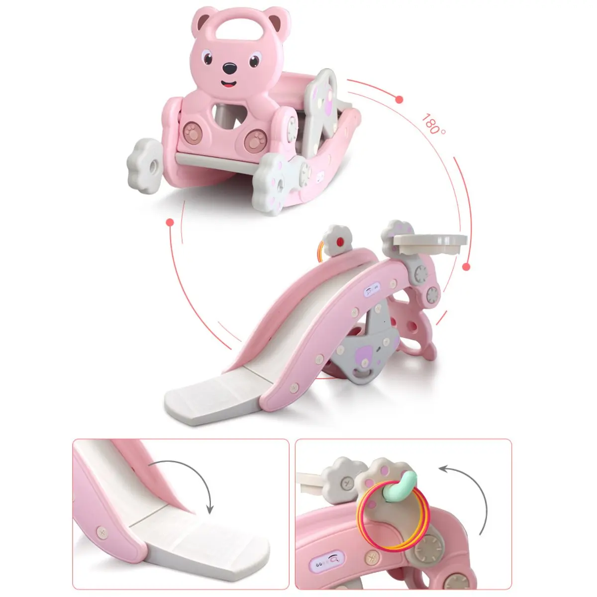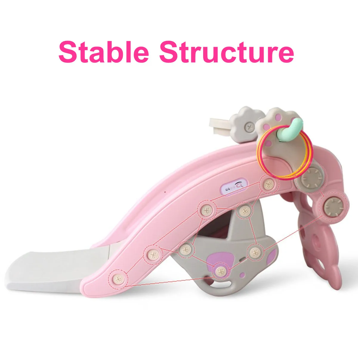 ● Гладкая горка: Детская горка имеет мягкий наклон, что делает ваших детей гладкими. Вся горка соединена плавно без краев для нежной кожи детей.
