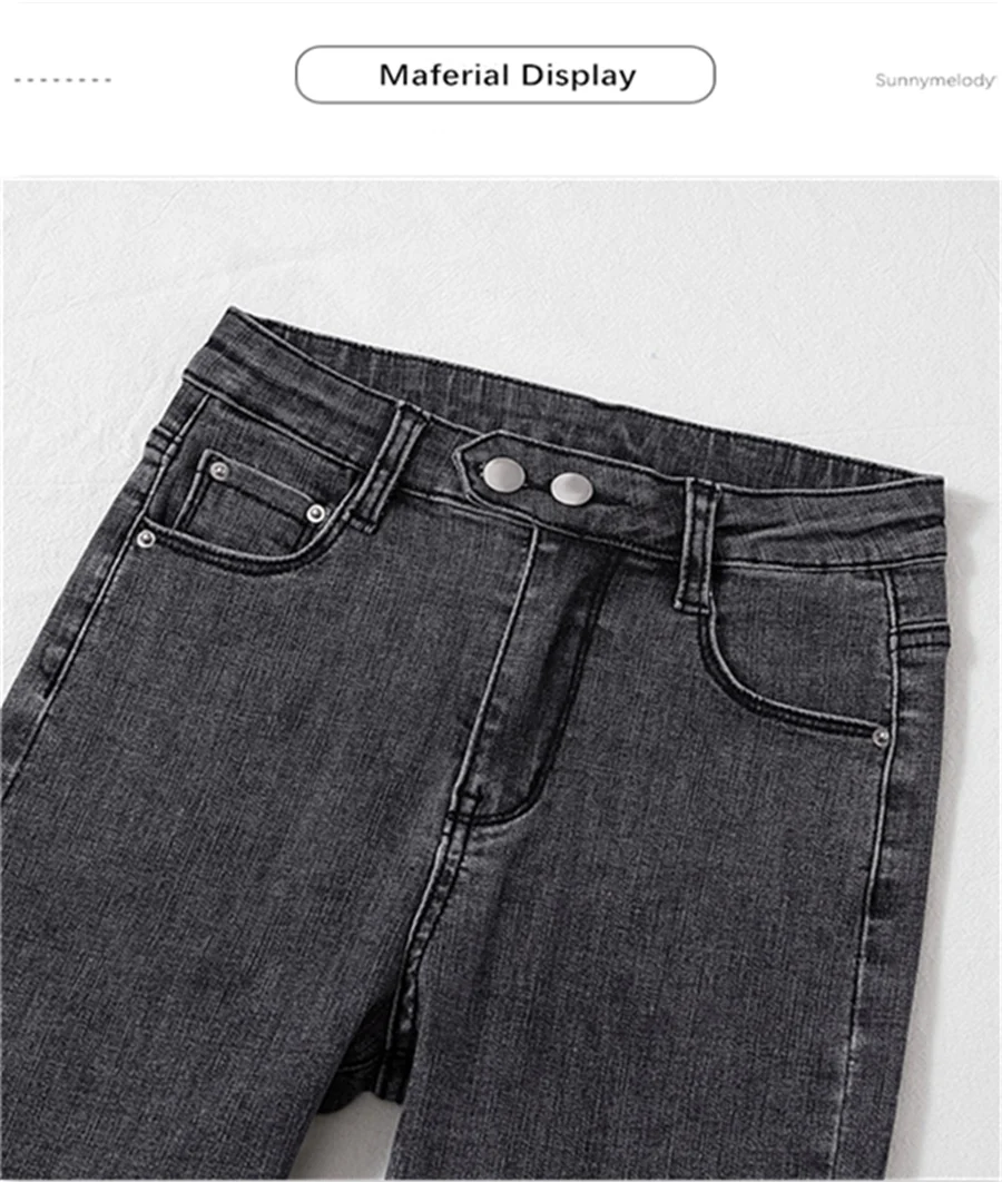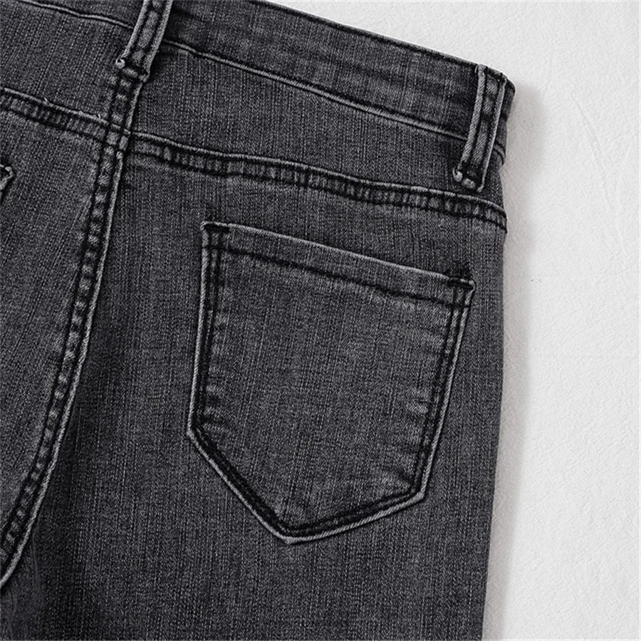 Новый стиль, женские джинсы, брюки, черный и серый цвет, женские джинсы, модные, эластичная резинка на талии, стрейчевые, тонкие, женские, весна и осень