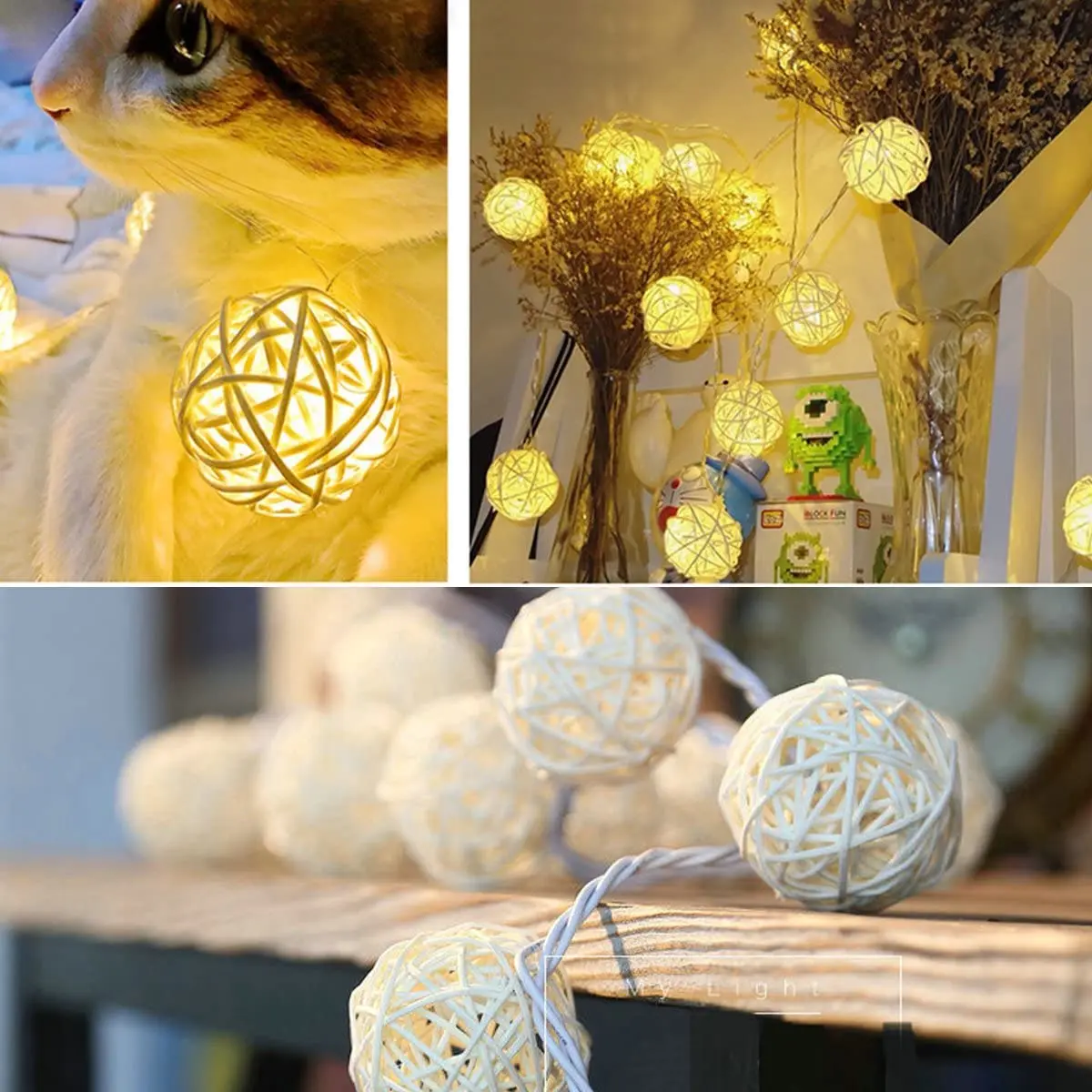 Материал: шарики из ротанга + светодиодный + пластиковая проволока Форма: шарик из ротанга Количество ламп: 20 светодиодов Цвет: 7 цветов Длина: 13,8 футов + (прозрачный провод) Источник питания: прозрачный блок питания (аккумулятор 3 * AA)