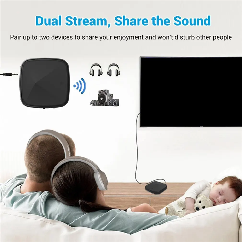 3. Задержка синхронизации без губ: Встроенный Кодек aptX с низкой задержкой (aptX LL) обеспечивает только небольшую задержку более 40 миллисекунд для плавной передачи звука. Вы можете комфортно наслаждаться стереозвуком высокой четкости во время просмотра телевизора, фильма, видео или фокусироваться на своей онлайн-игре lag-free без проводов, свисающих с рук наушниками. В частности, он также поддерживает aptX LL в режиме приемника (RX).