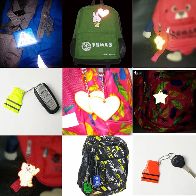 Хорошие подарки для детей, надевайте сумки, одежду. Будьте внимательны, будьте в безопасности Размеры: 5,5 см Материал: мягкий светоотражающий ПВХ Яркость отражения: 250cd/lx/м²