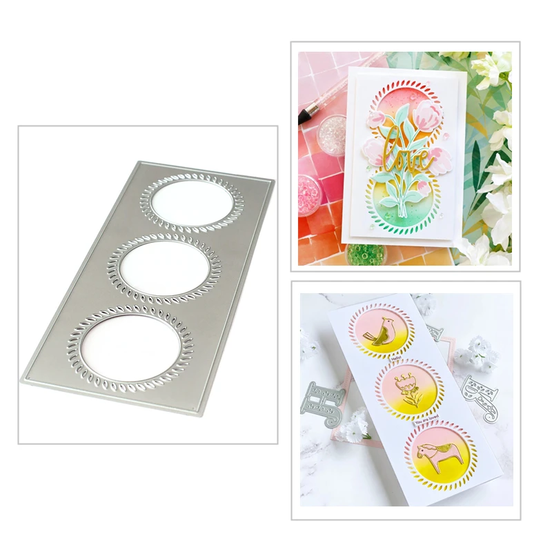 Новинка 2021, металлические резные штампы и Скрапбукинг для изготовления бумаги, три круга, кружева, тиснение, рамка для карт, ремесло