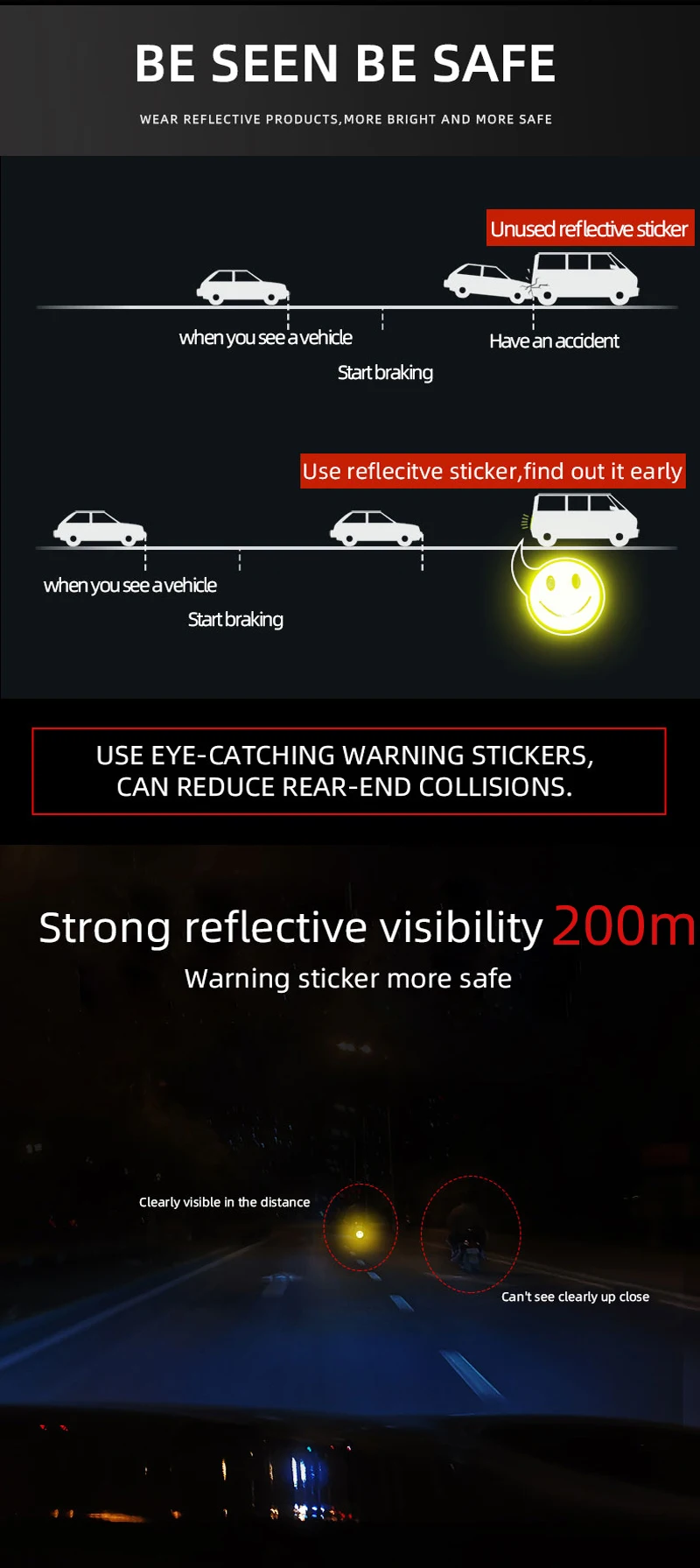 Милая Светоотражающая наклейка со смайликом, ПВХ, мультяшная школьная сумка, Безопасные наклейки, декоративные канцелярские наклейки для безопасности дорожного движения