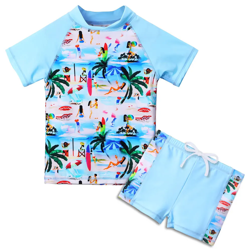 BAOHULU/купальный костюм для детей от 3 до 10 лет UPF50 + купальный костюм с короткими рукавами из двух предметов для девочек ясельного возраста, пляжный купальный костюм рашгарды