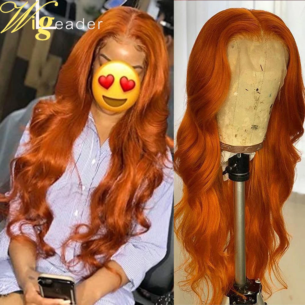 Wigleader, оранжевые волнистые человеческие волосы, без клея, кружевные передние парики, 180% предварительно выщипанные свободные волнистые фронтальные парики, 13x6x1 T часть волос, парики с детскими волосами