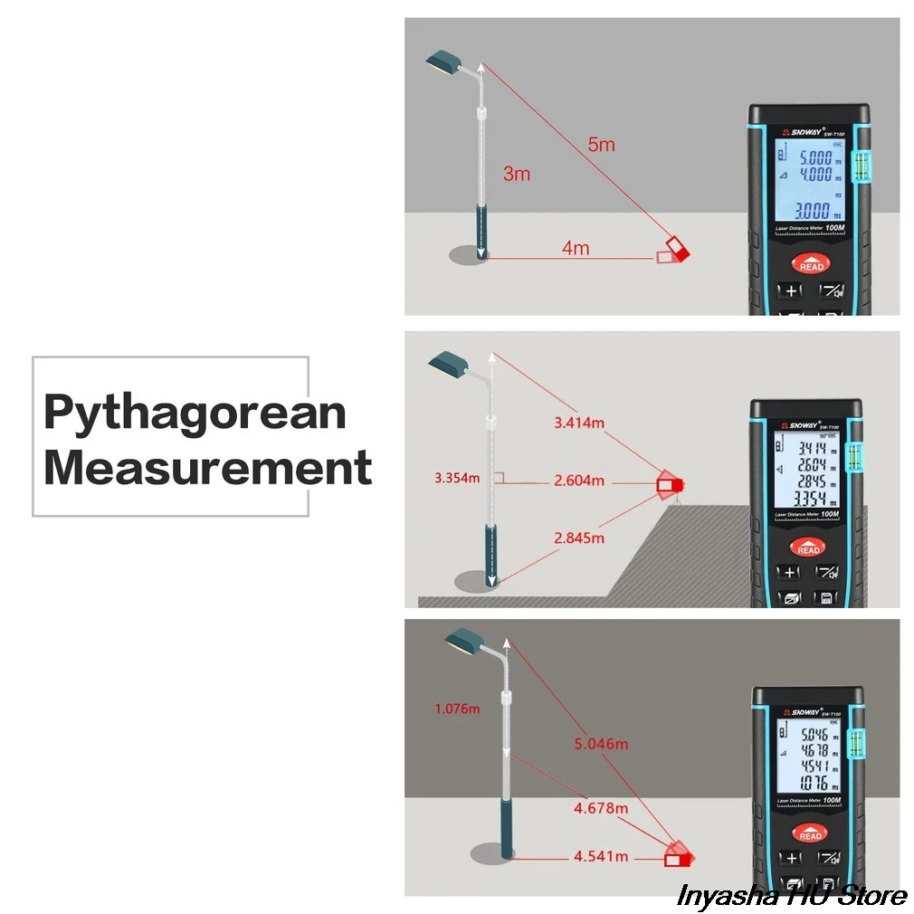Этот лазерный дальномер SNDWAY разработан специально для измерения и расчета расстояния, площади, объема и Пифагора.