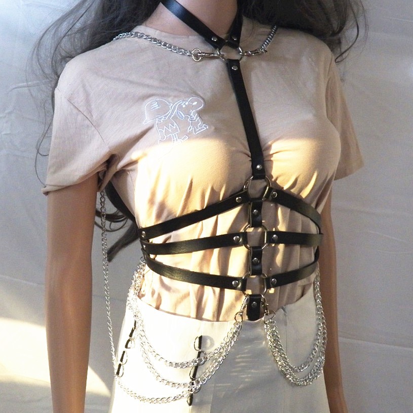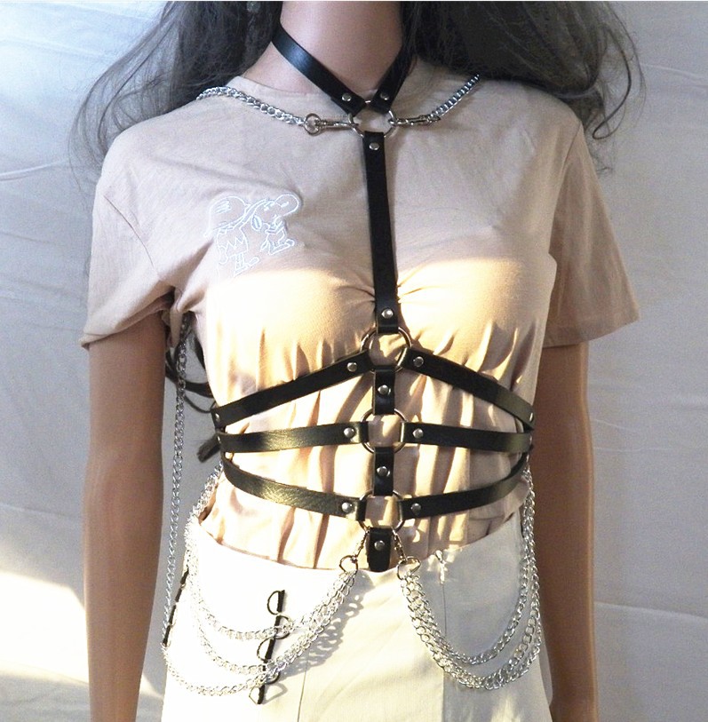Пояс из искусственной кожи, подвязка, ремень для тела, ремни, женское нижнее белье, сексуальные костюмы, на подтяжках, эротический укороченный топ, одежда в готическом стиле с цепочкой