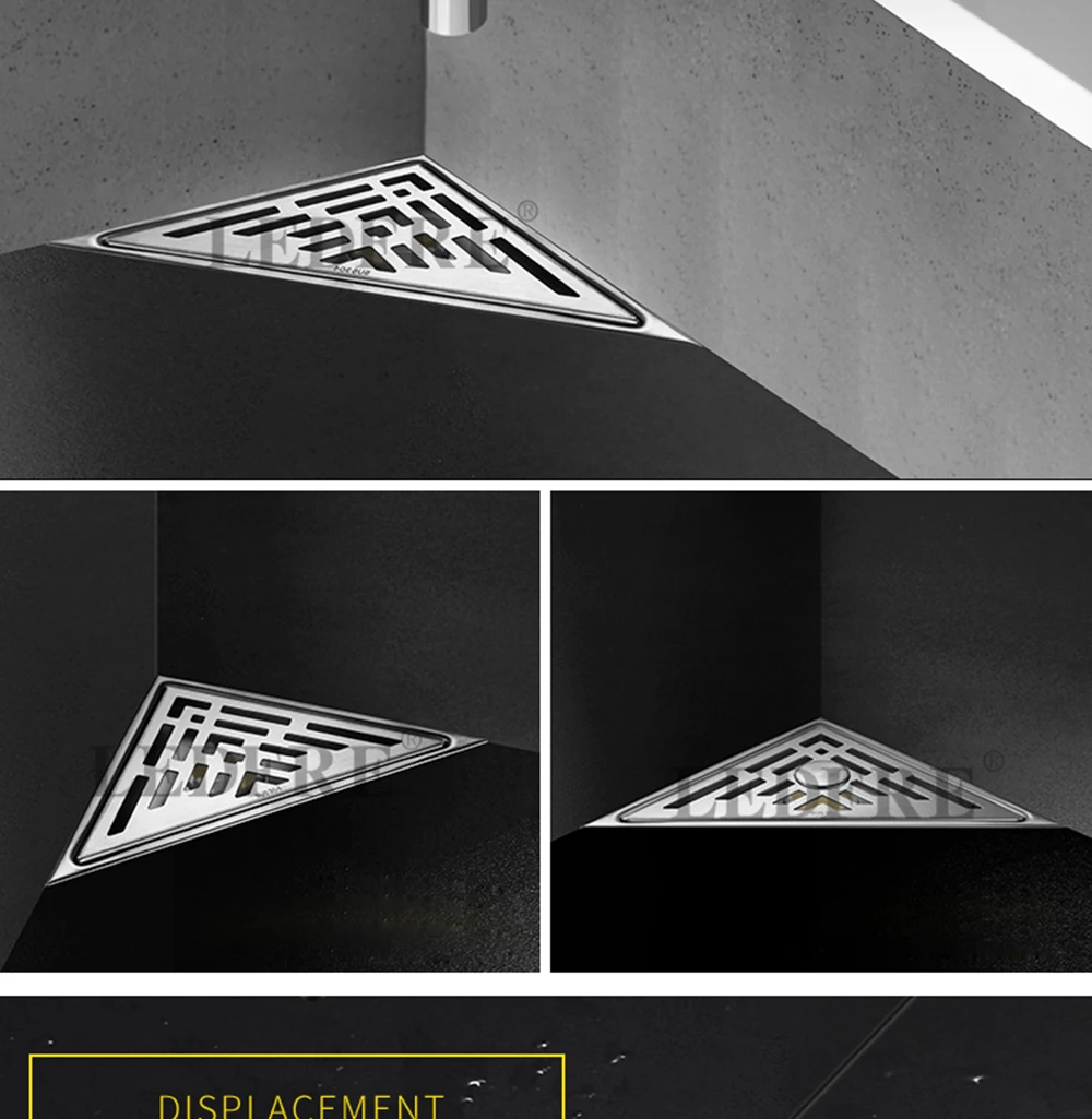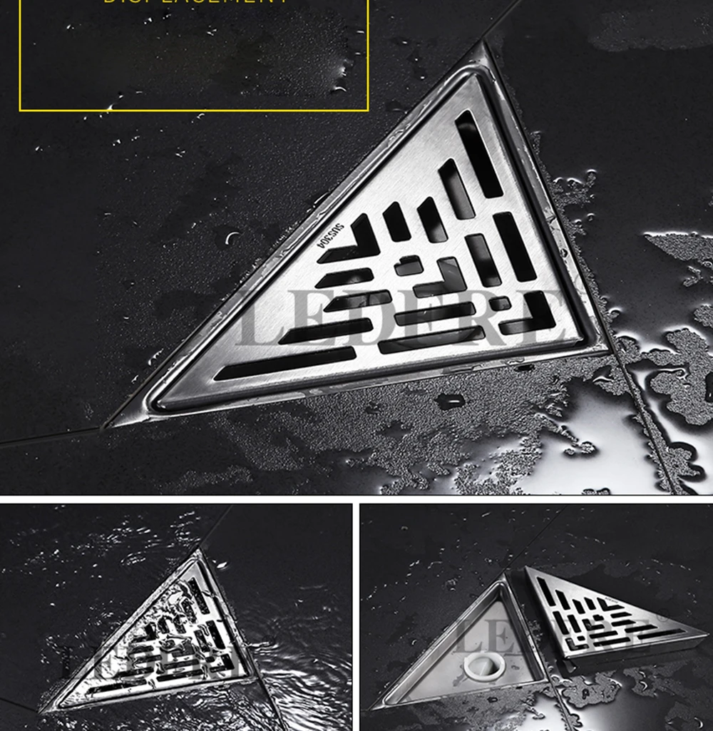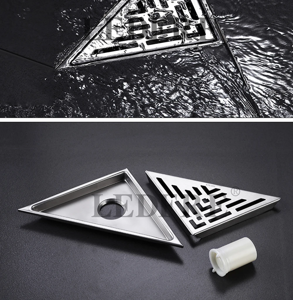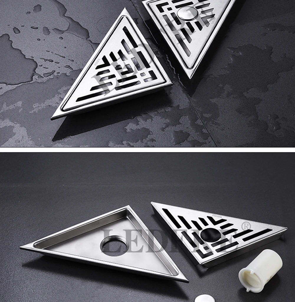 LEDFRE треугольная Сливная крышка из нержавеющей стали для душа, Сливная крышка для ванной комнаты, черный сливный канал